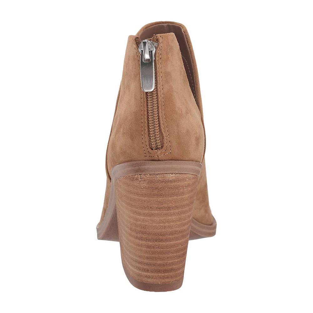 FISACE Womens Pointed Toe Stacked Mid Heel Ankle Boots V Cut Back Zipper Booties 8