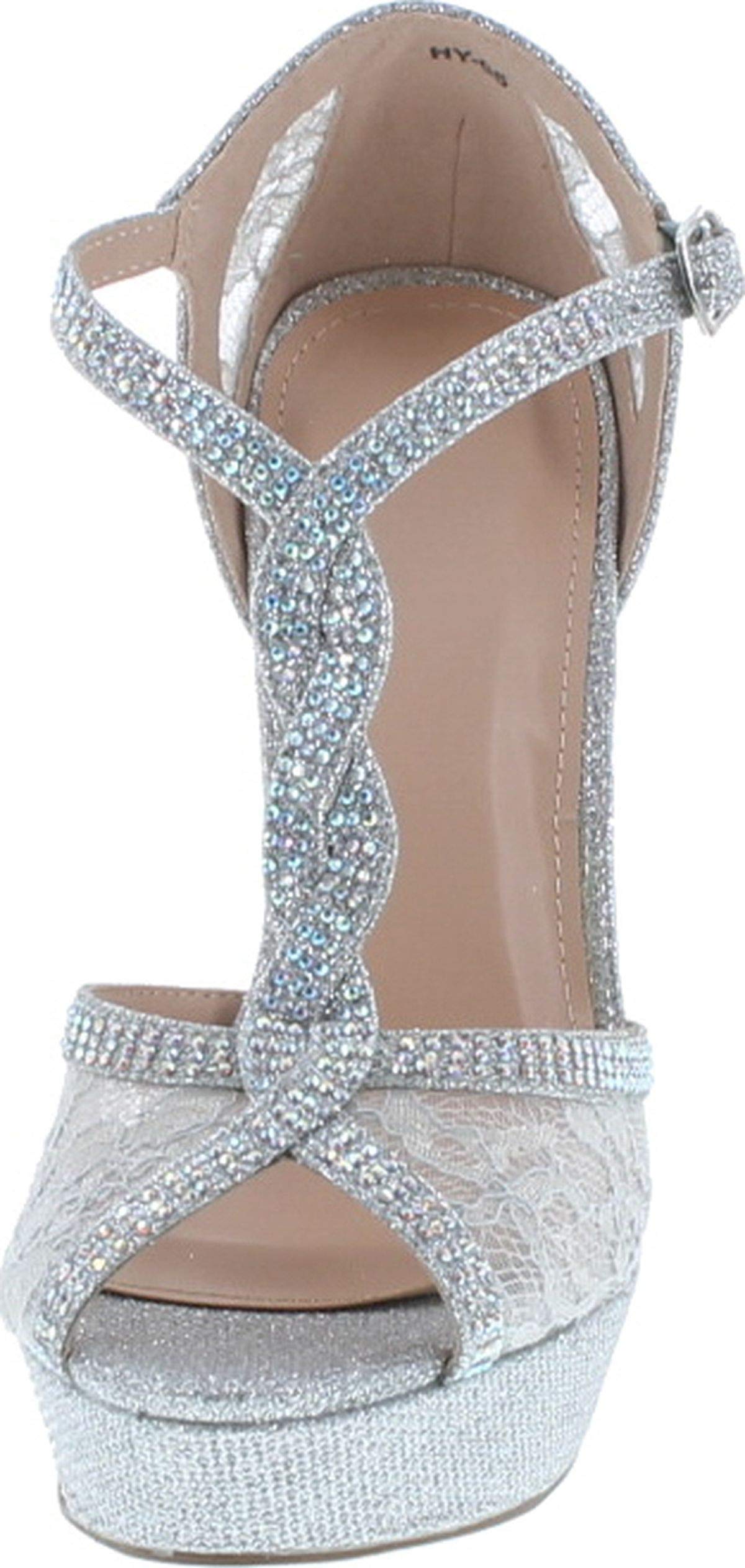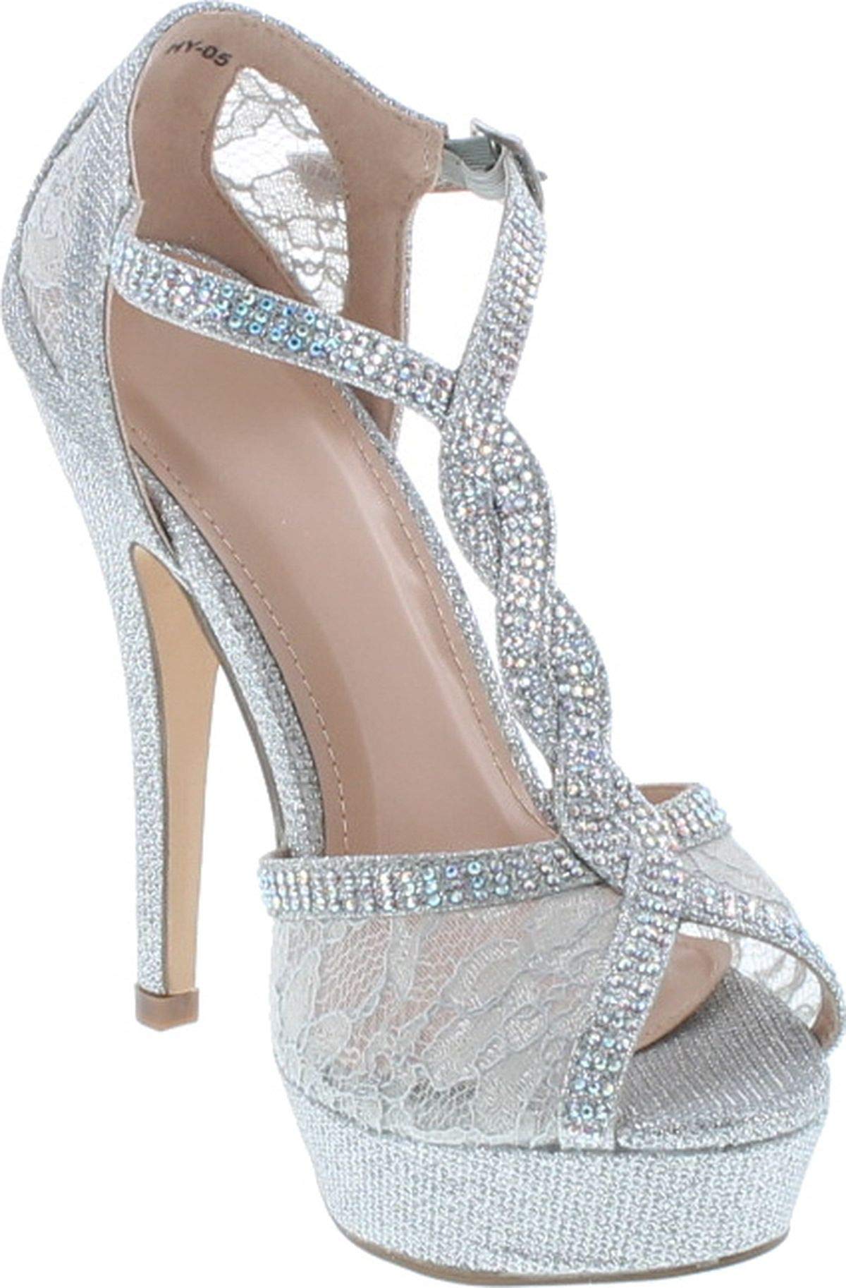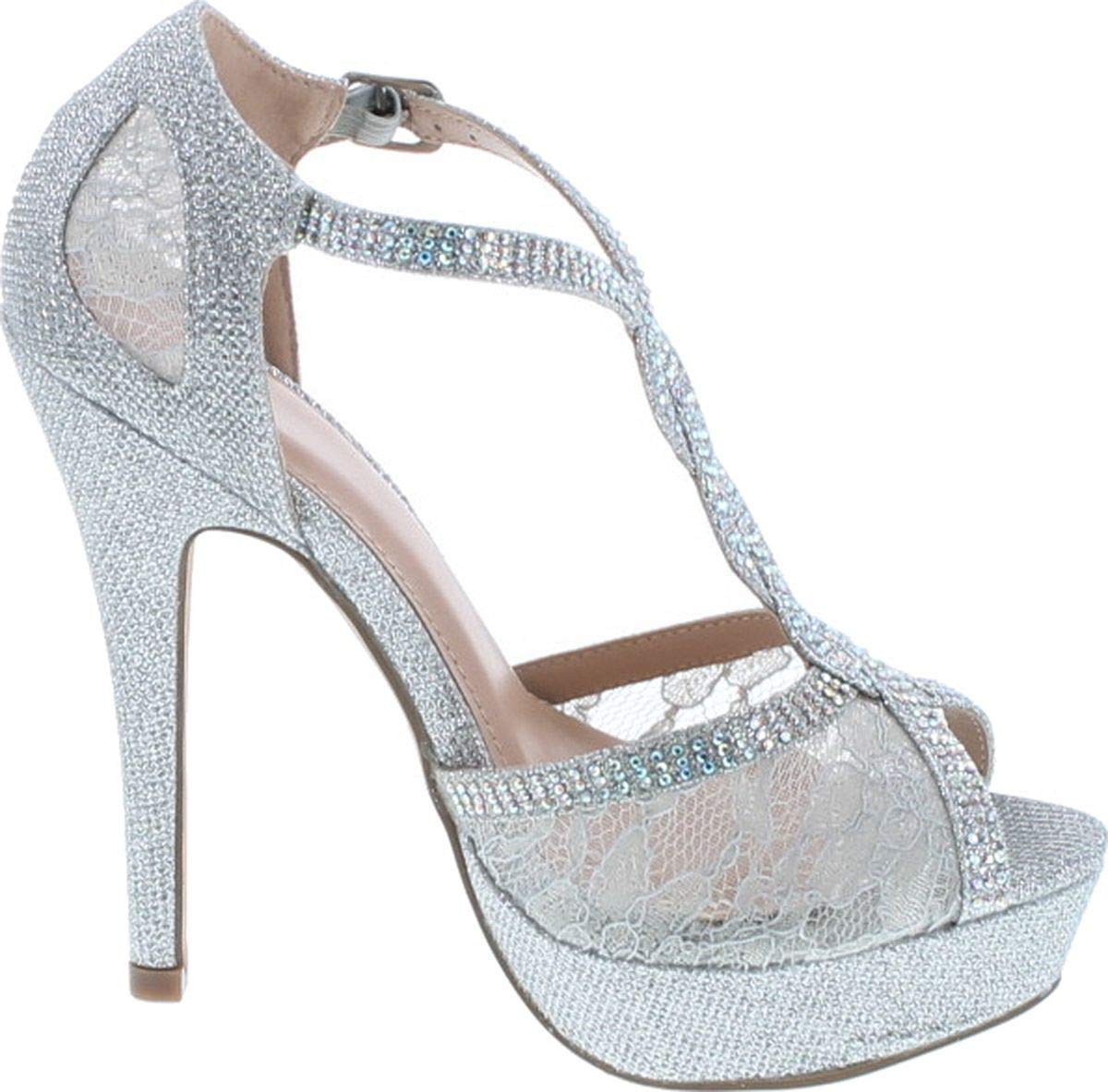 Hy-5 Formal Evening Party Lace Ankle T-Strap Peep Toe Stiletto High Heel Pumps