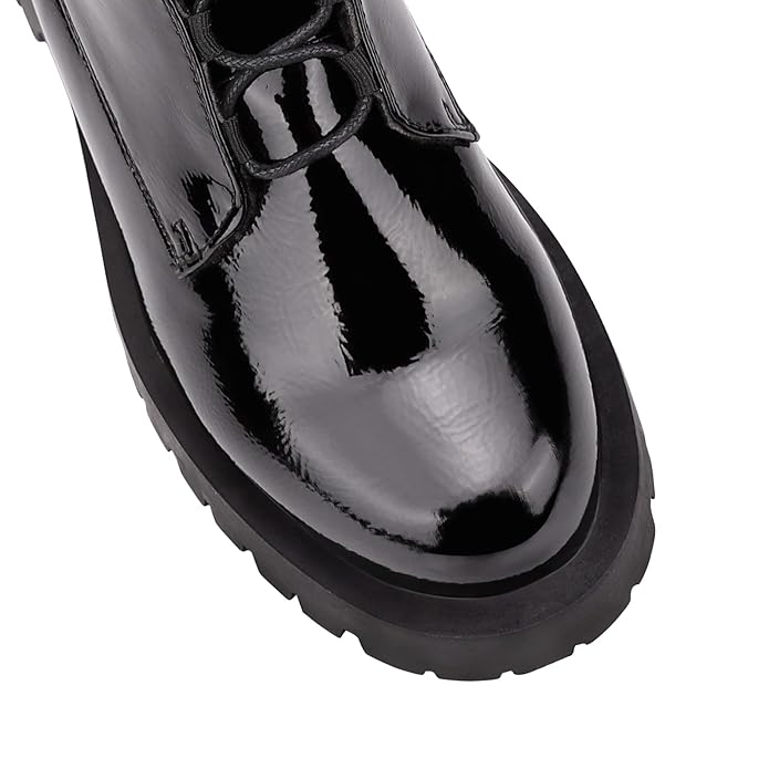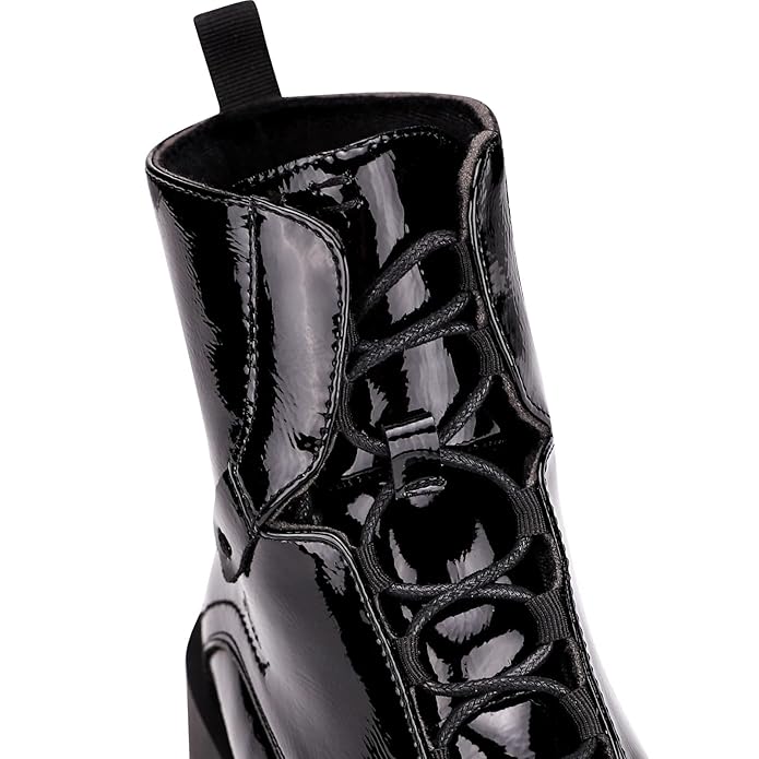 ISOMEI Combat Platform Patent Leather Lace up Ankle Boots Platform Chunky Boots 8