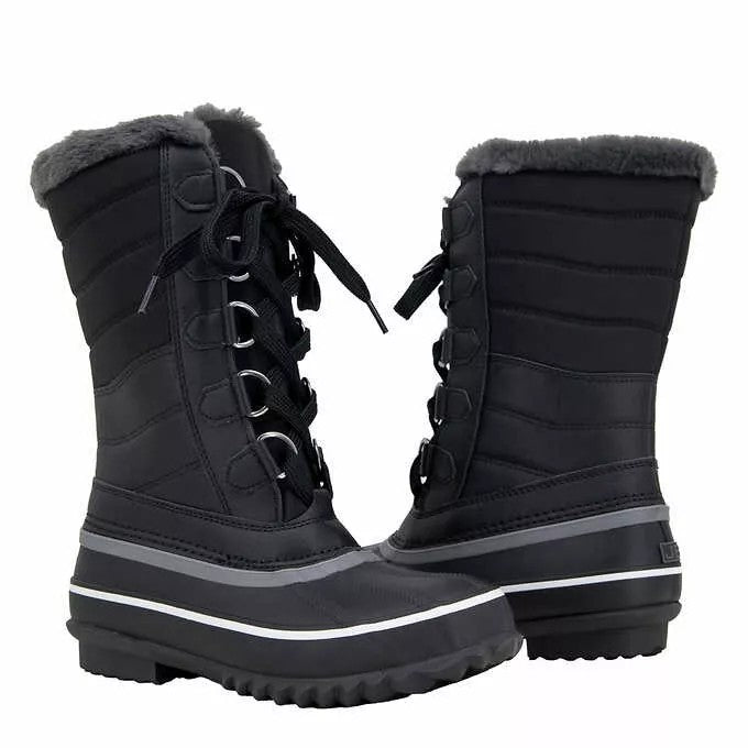 JBU Sabine Black Fashion Lace Up Rounded Toe Mid Calf Snow Boots 8