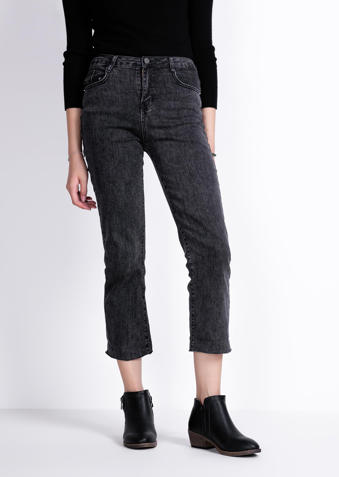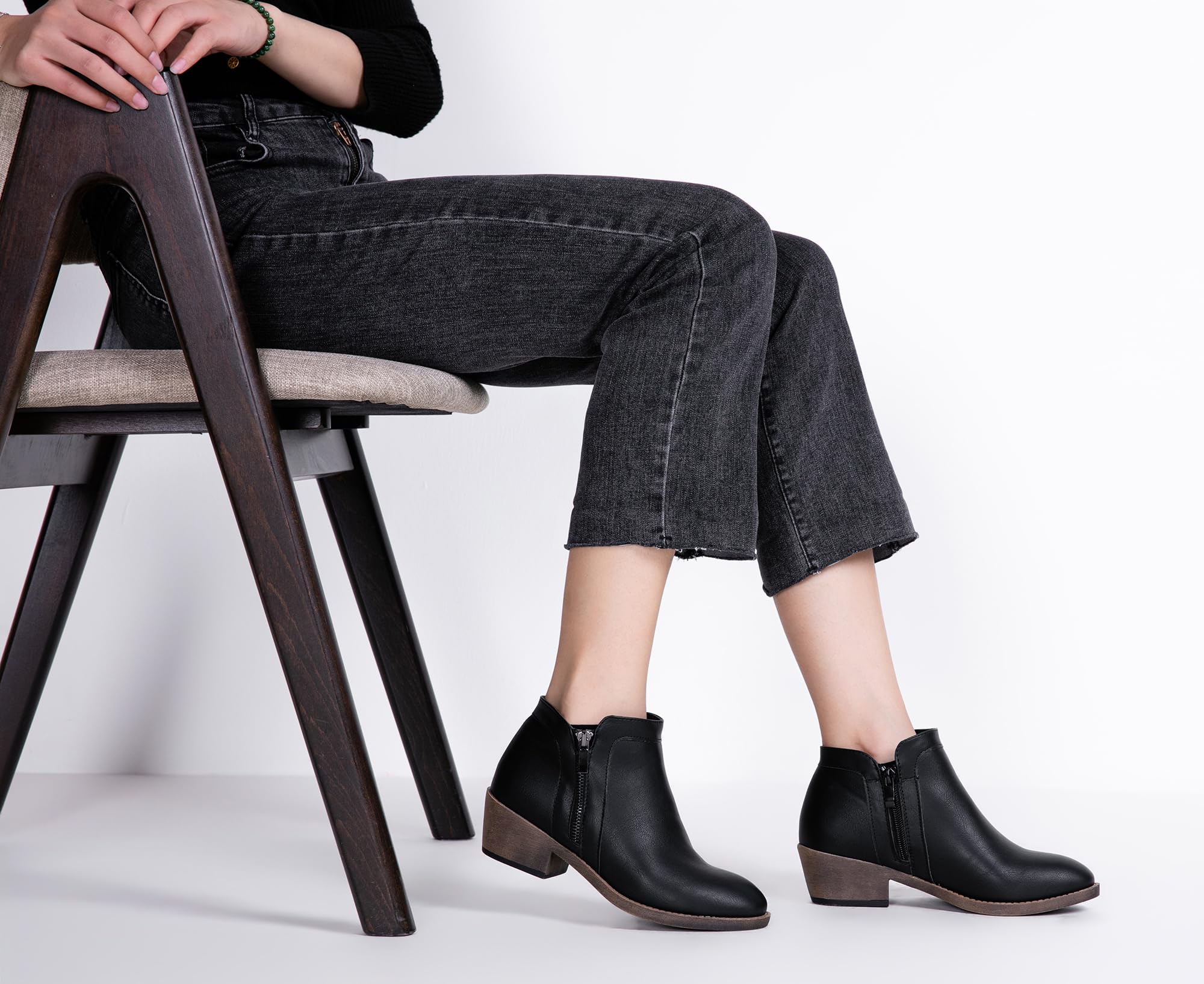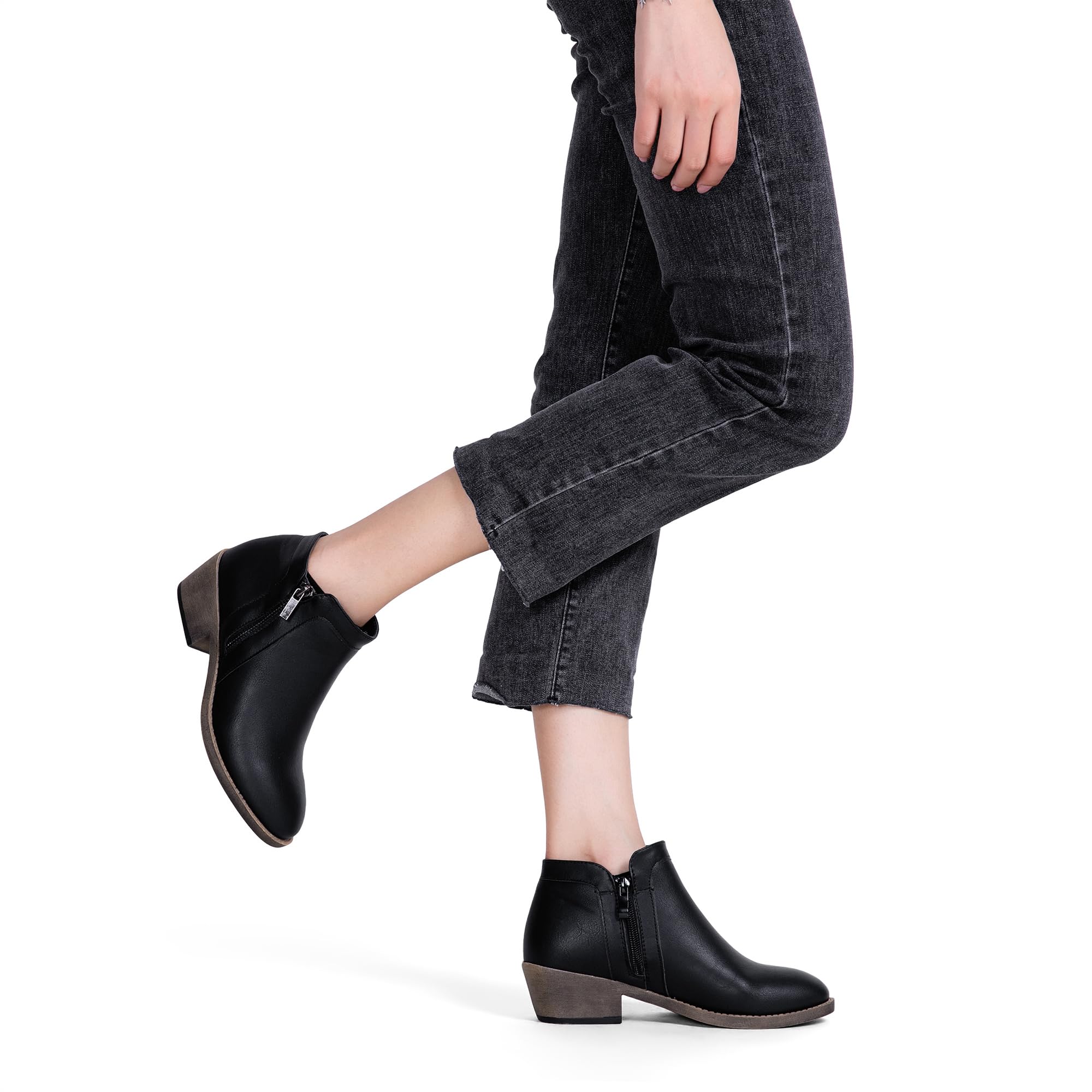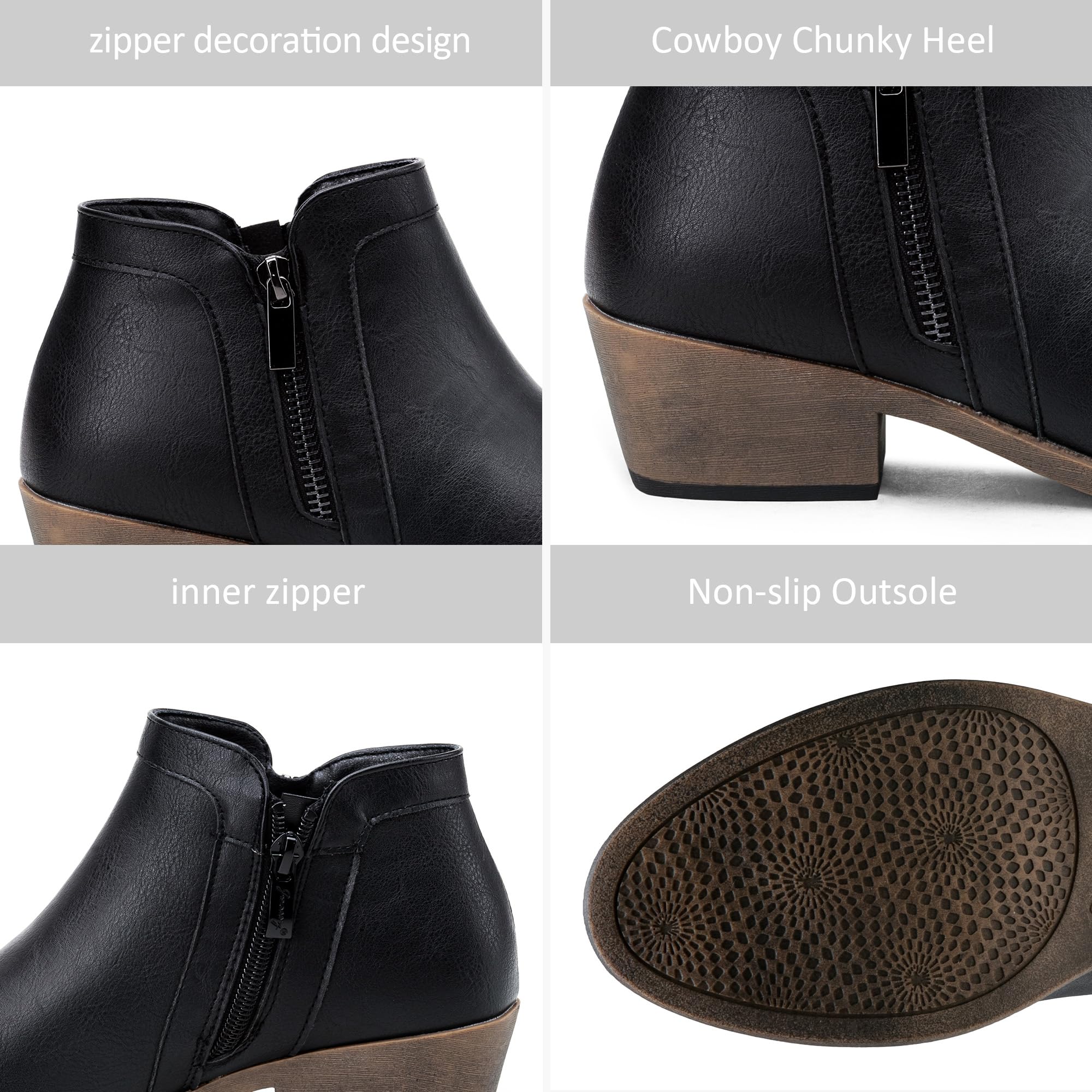 Jeossy Women's 9618 Classic Black Fashion Ankle Boots Slip on Chunky Heel Boots