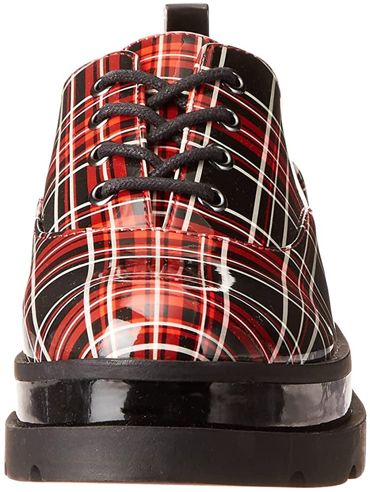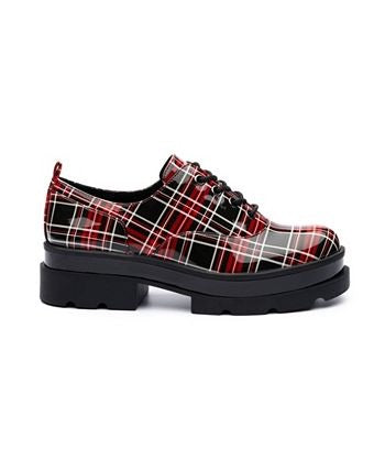 An assorted mix of finishes and embellishments updates a menswear-inspired oxford lifted by a chunky heel and platform sole.