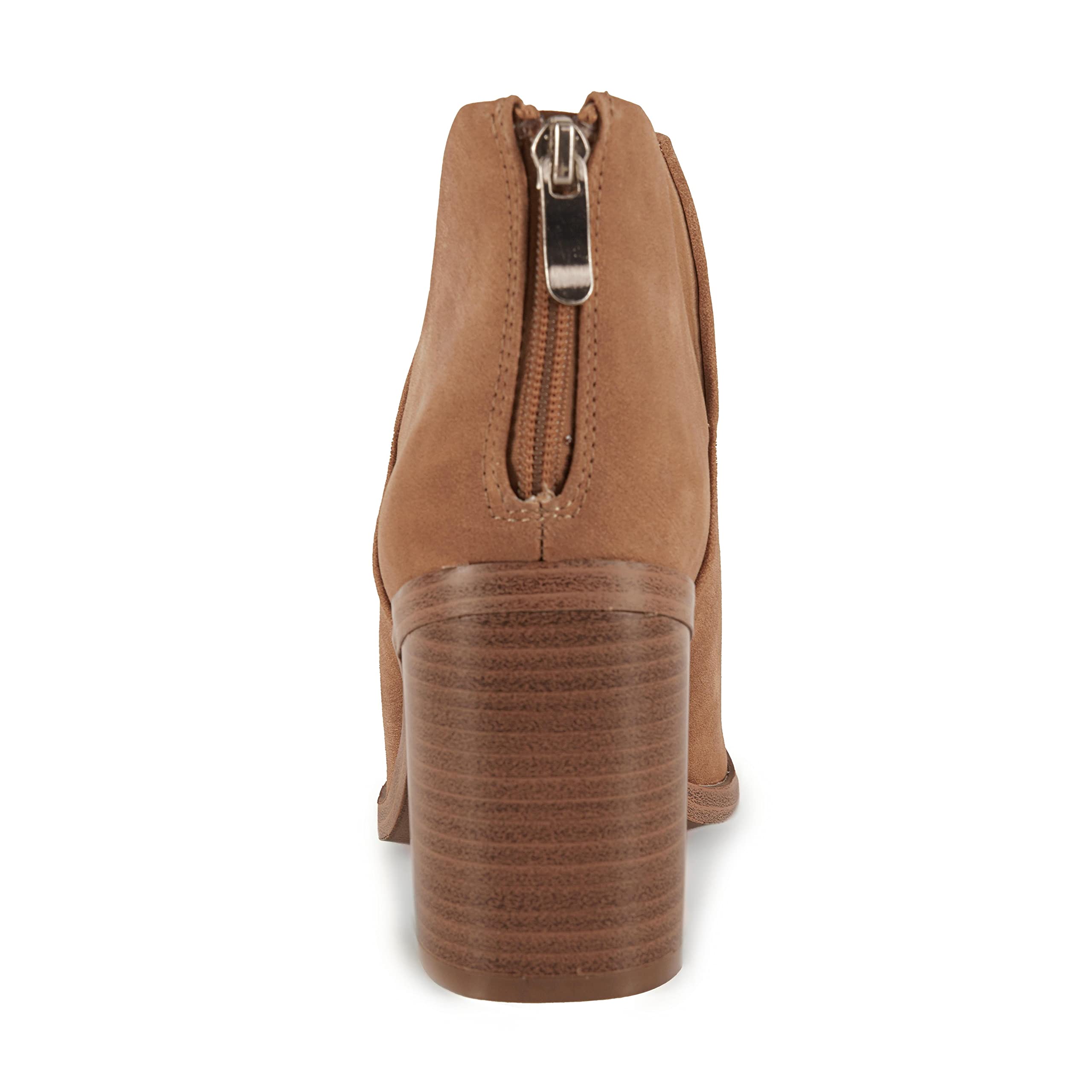 Kathemoi Vcut Light Coffe Slip on V Cutout Pointed Toe Stacked Mid Heel Booties 7