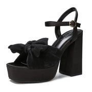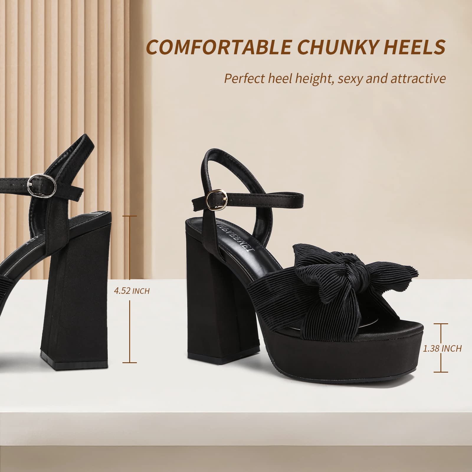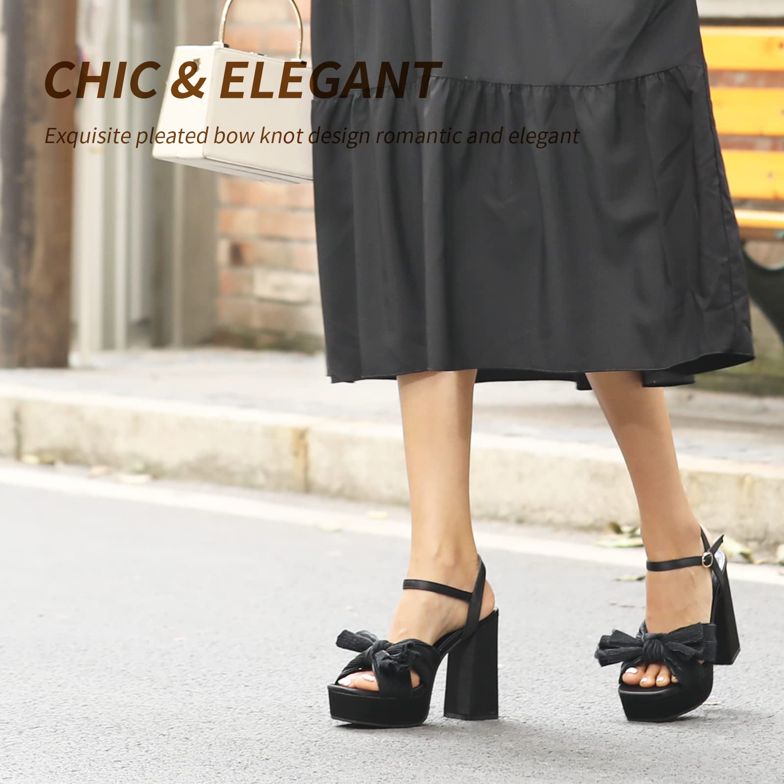 KHPAERMEI Bow Knot Platform Fashion Open Toe Chunky Ankle Strap Heeled Sandals 8
