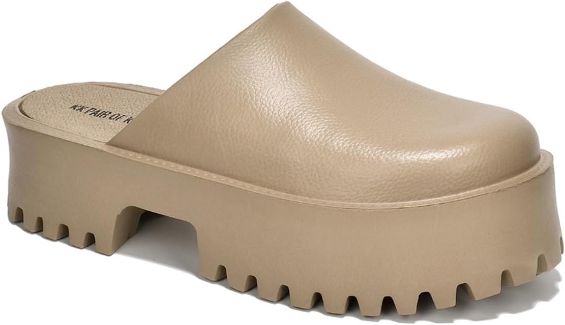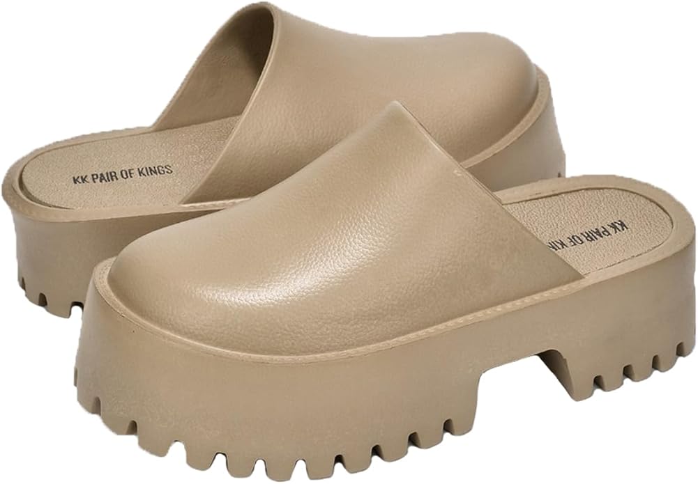KK PAIR OF KINGS Heights Taupe Fashion Slip On Non-Slip Mule Clog Platform Sandals