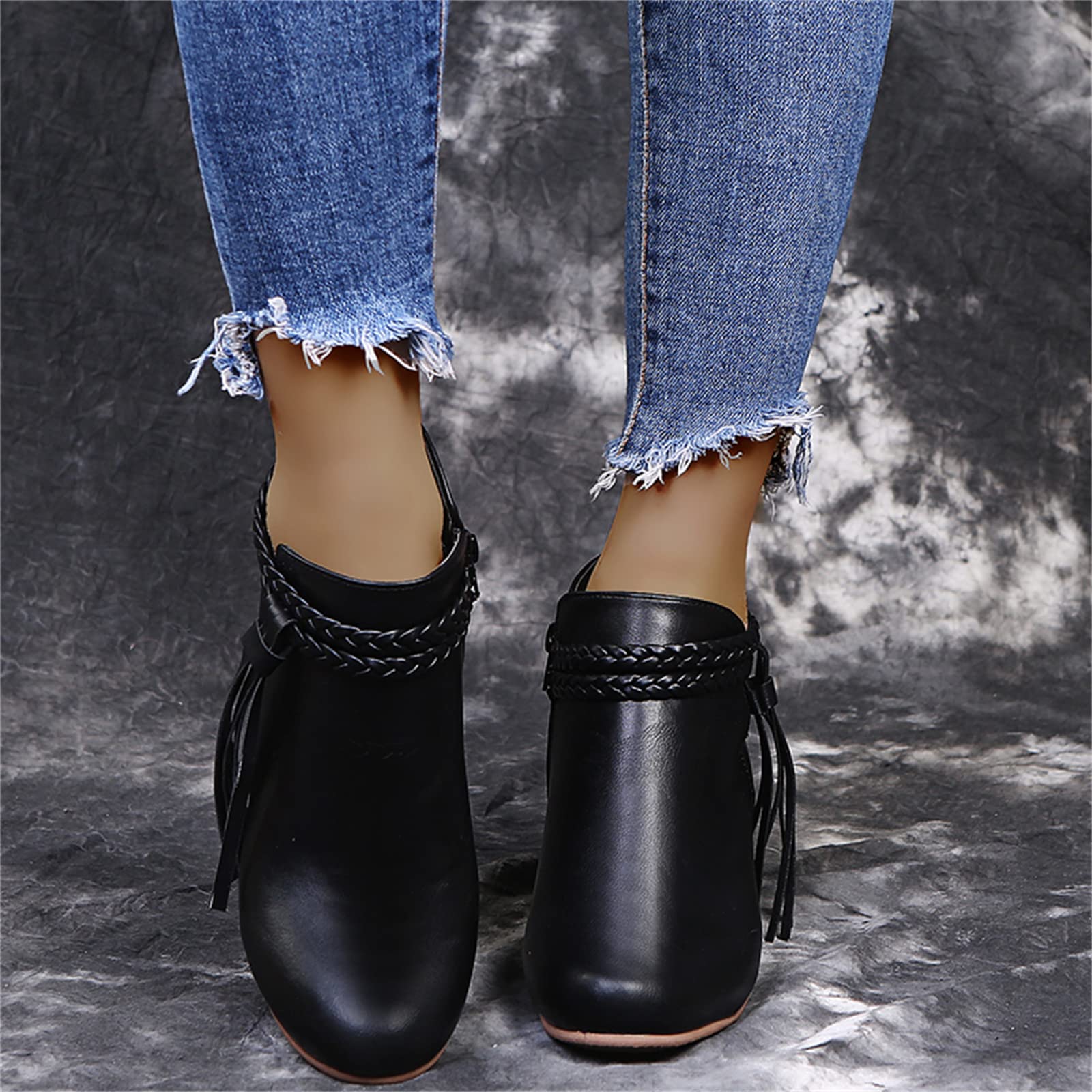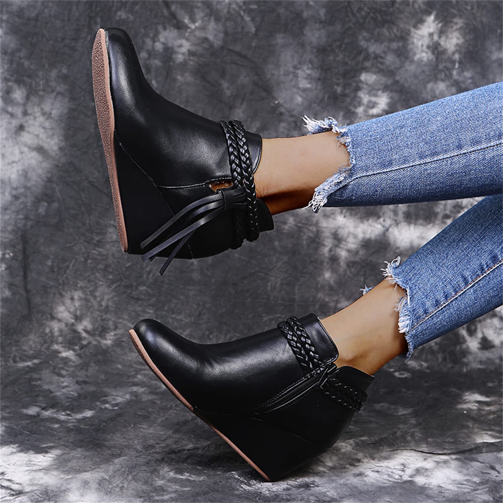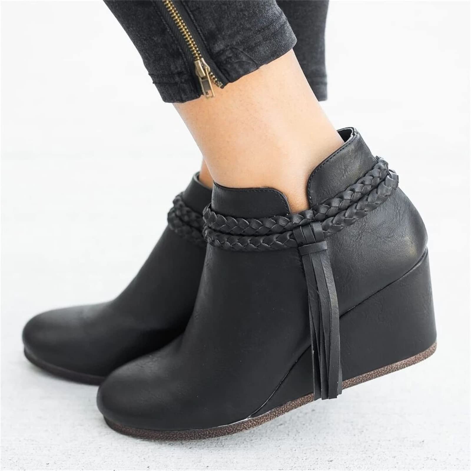 Ladmiple Black Wedge Casual Women Low Wedge Heel Chelsea Fashion Ankle Booties 7.5