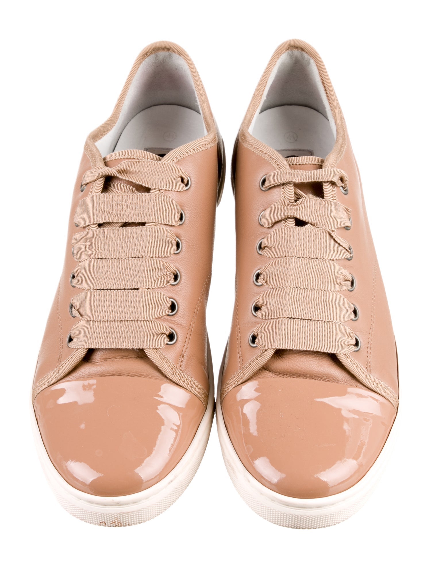 Lanvin's leather tennis sneakers are crafted in a luscious cream hue, perfect for adding the finishing touch to neutral, urban-themed ensembles. The smooth leather silhouette sits atop a clean white sole for slight tonal contrast. upper: lamb leather lining: leather sole: leather insole, rubber sole round toe lace-up Made in Portugal Designer colour name: Ivory True to size Half sizes please take the next size up European sizes True to size Half sizes please take the next size up European sizes