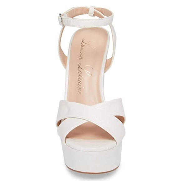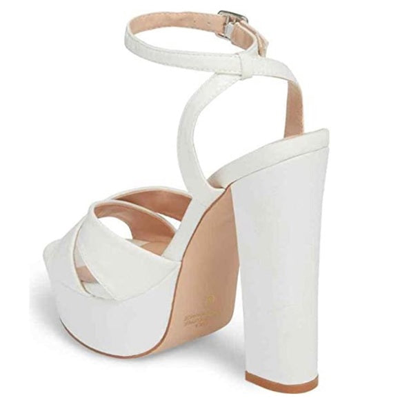 Lauren Lorraine Carla White High Heel Platform Pump Ankle Strap Open Toe Sandals
