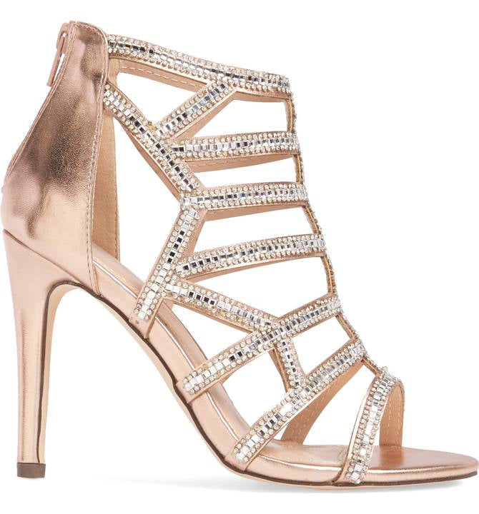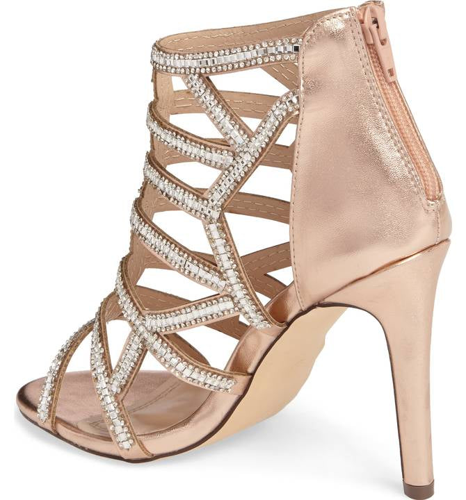 LAUREN LORRAINE Rae Rhinestone Caged Evening Dress Prom Wedding Pumps Sandals