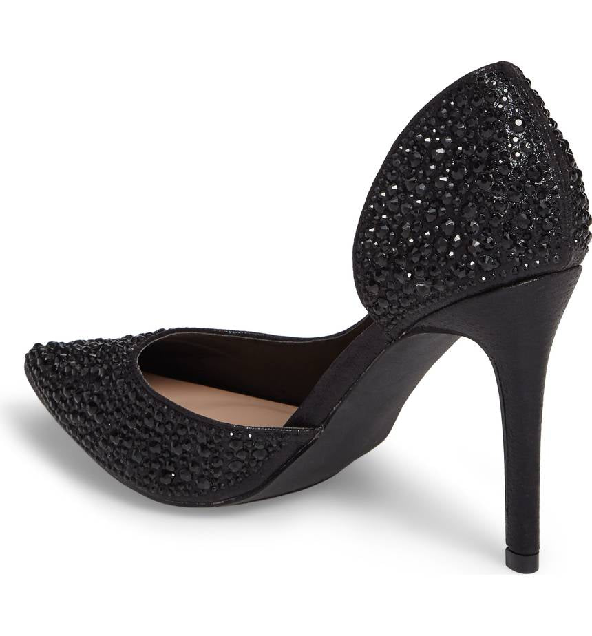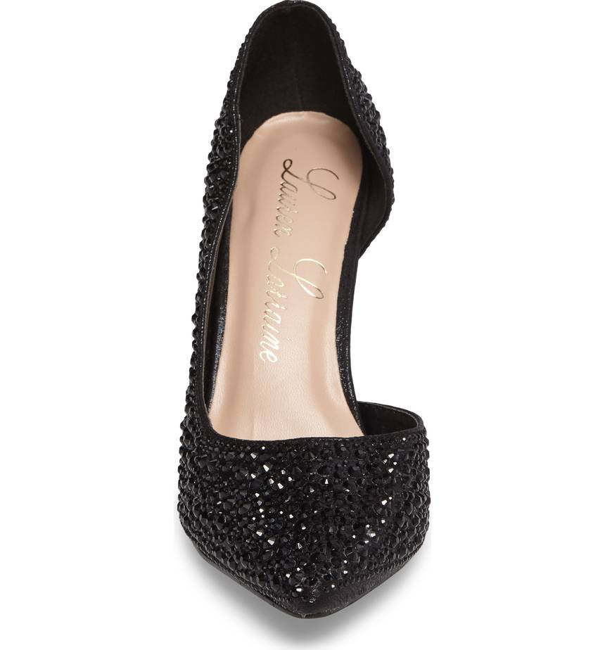 Lauren Lorraine Ruby Black Rhinestone Embellished Half Dorsay Pointy Dress Pumps