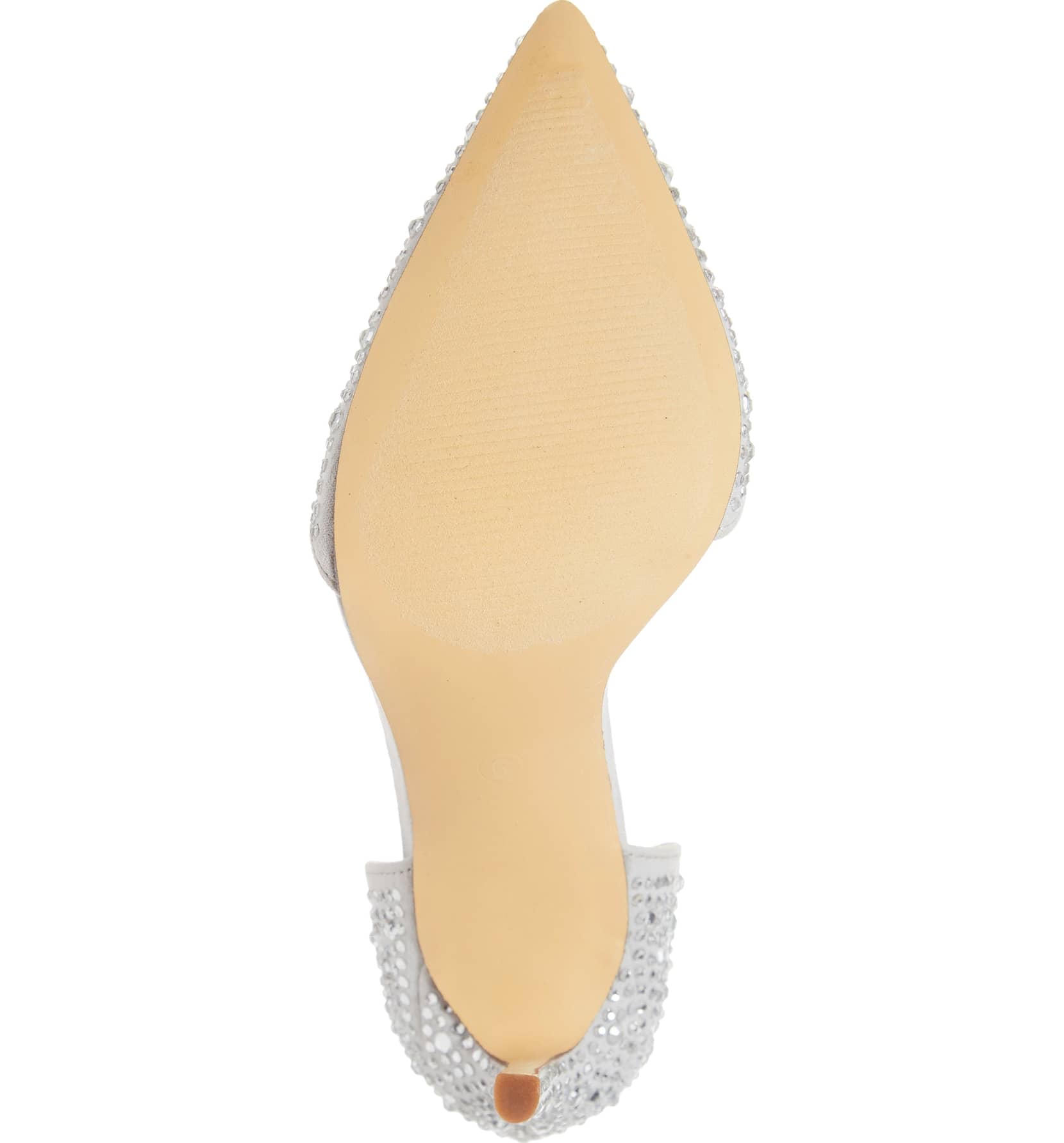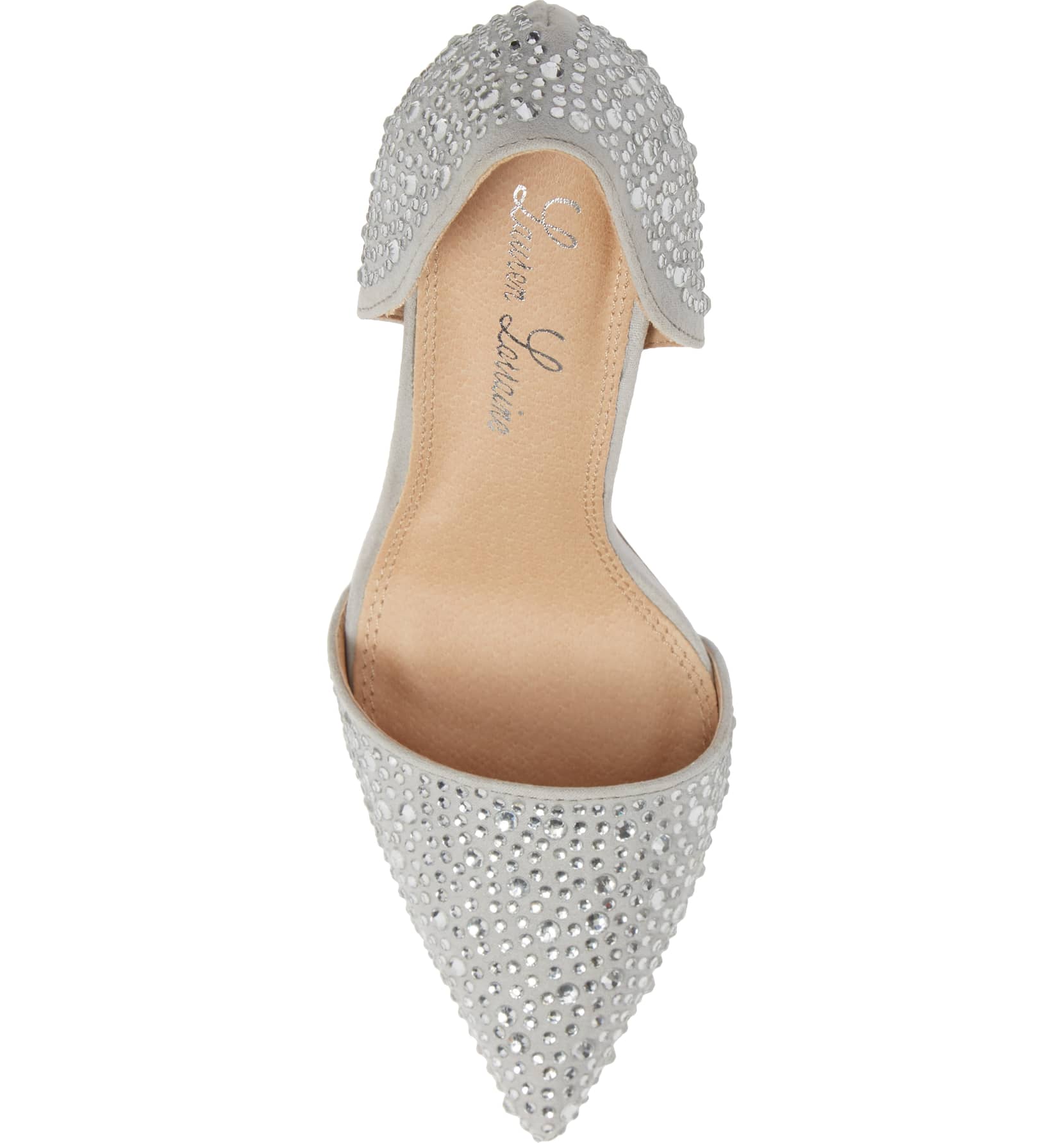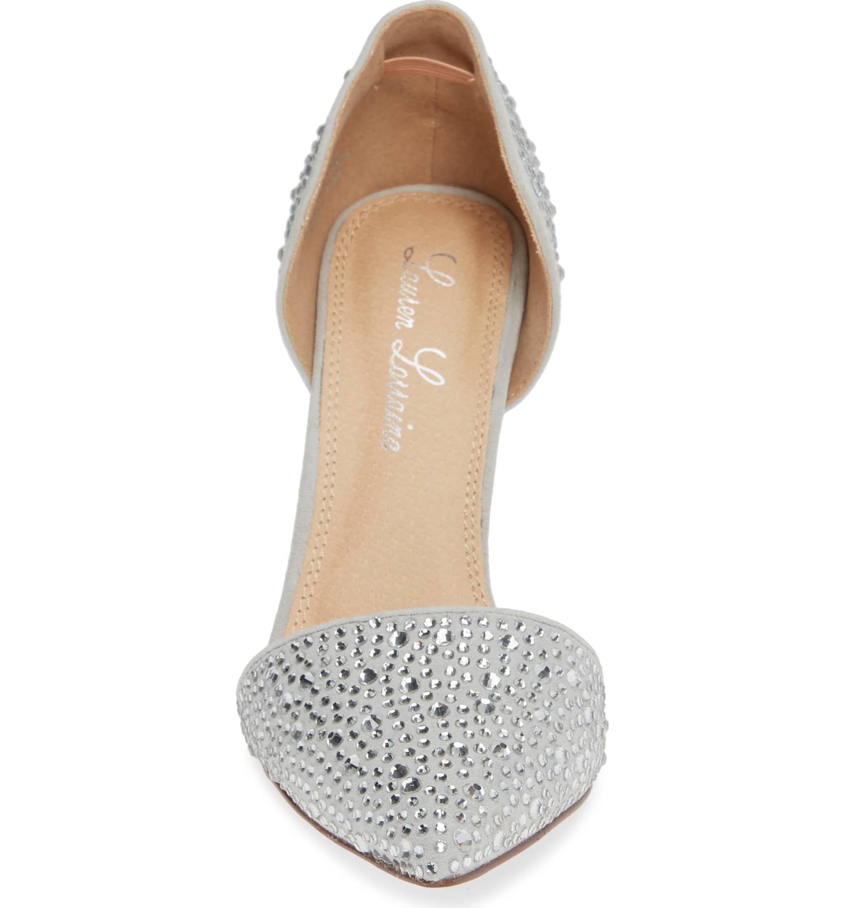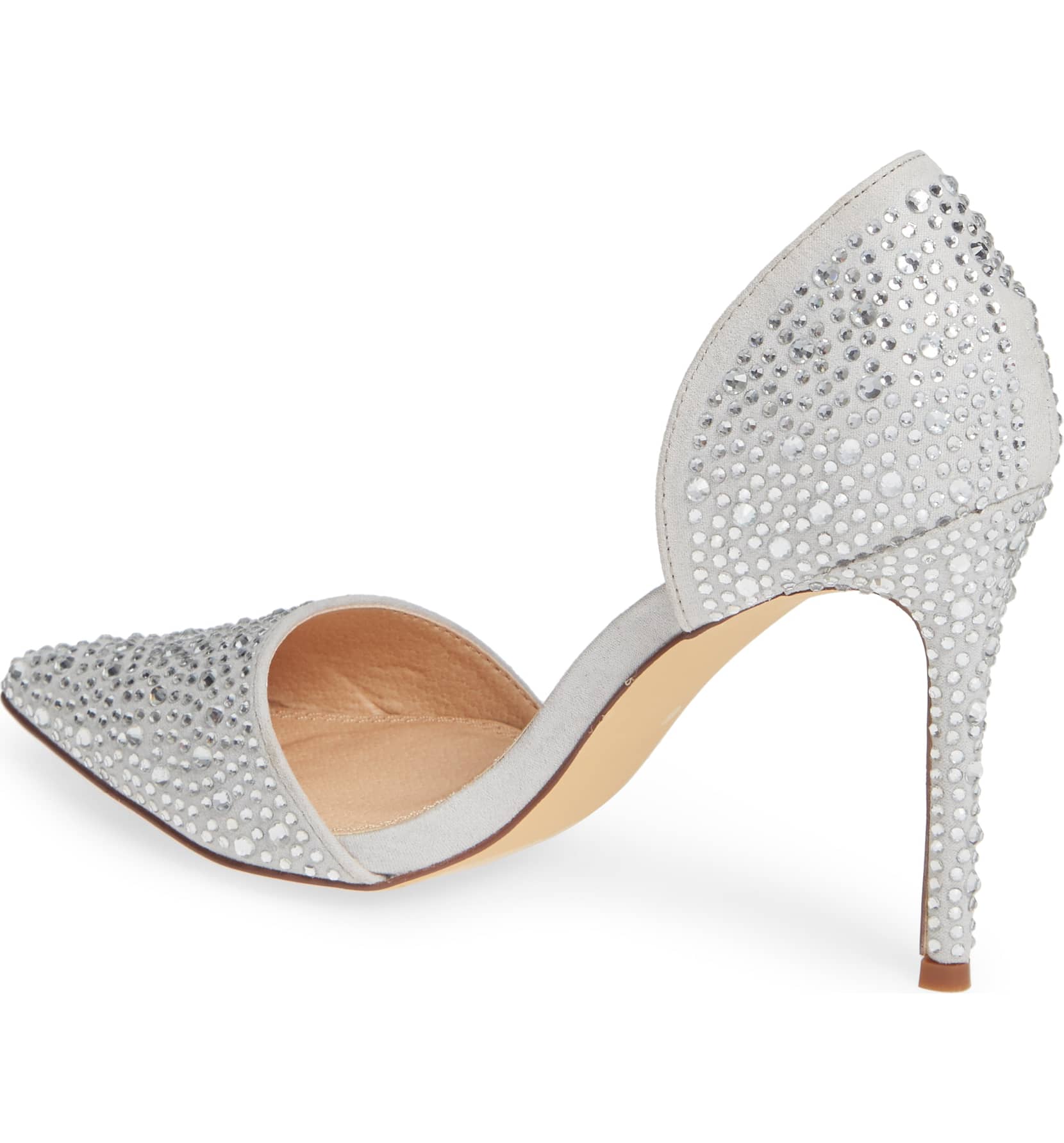 Sari Silver Crystal Embellished d'Orsay Pump - Silver A party-ready pump in an arch-baring d'Orsay silhouette goes glam in allover raindrop crystals.