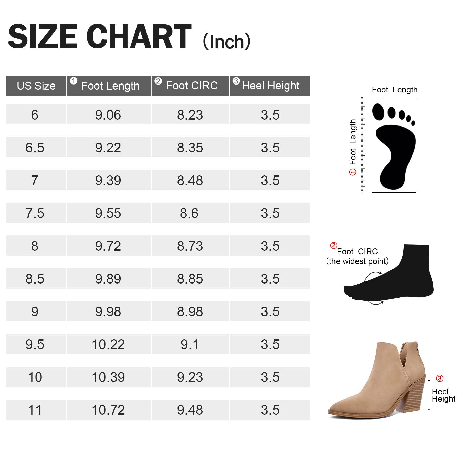 mysoft Women's Ankle Boots Slip on Cutout Pointed Toe Chunky Stacked Mid Heel Booties