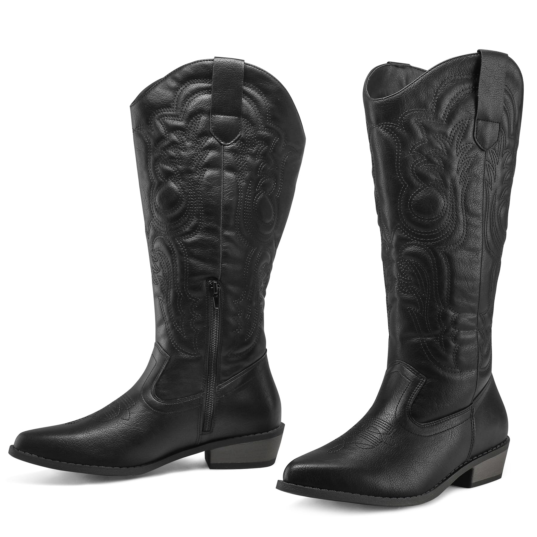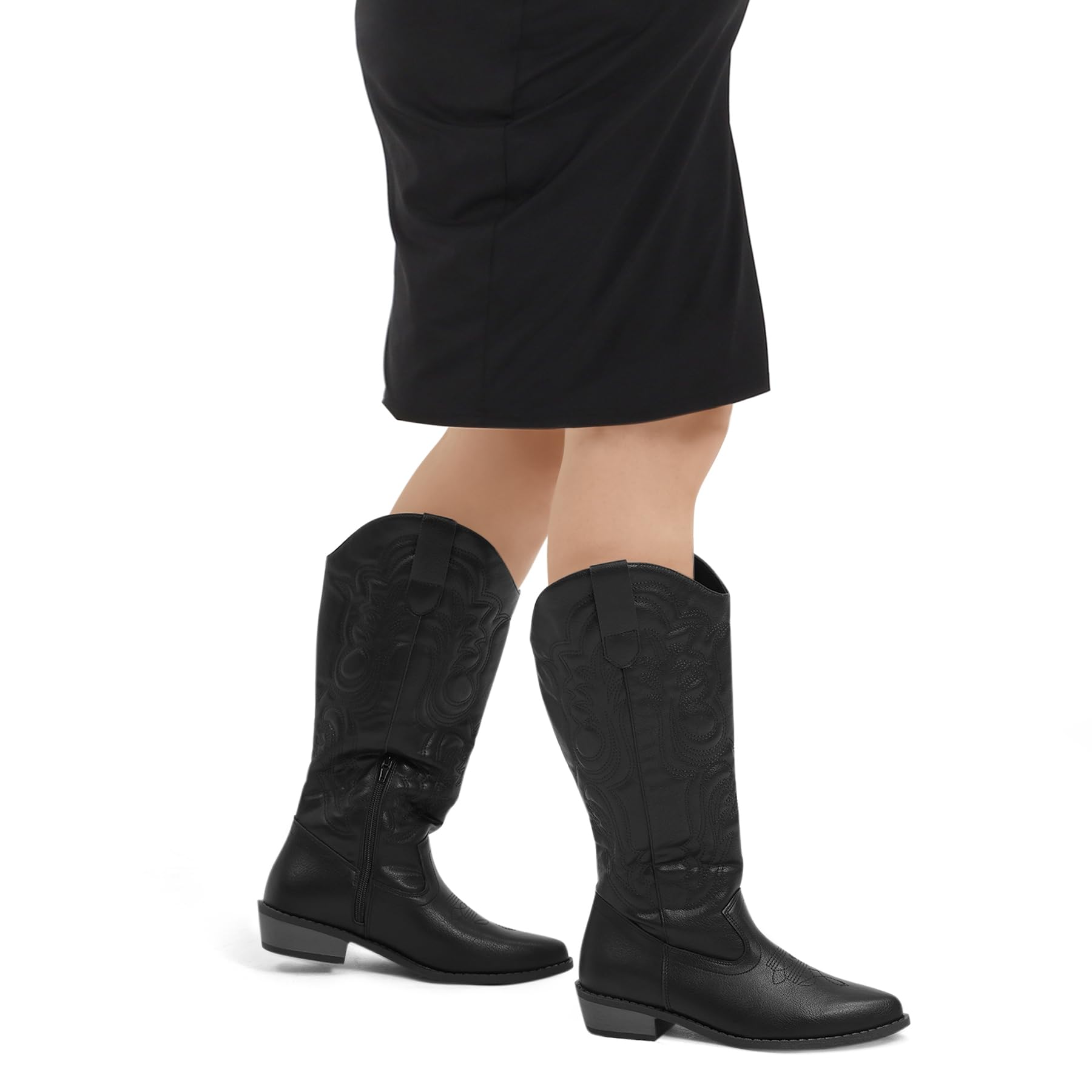 - Comfort That Lasts All Day: Featuring a soft, breathable mesh lining, memory foam, and cushioned insoles, these cowgirl boots are designed to keep your feet comfortable all day. The loose-fit knee-high design, complete with side pull tabs and an internal zipper makes slipping them on and off effortless