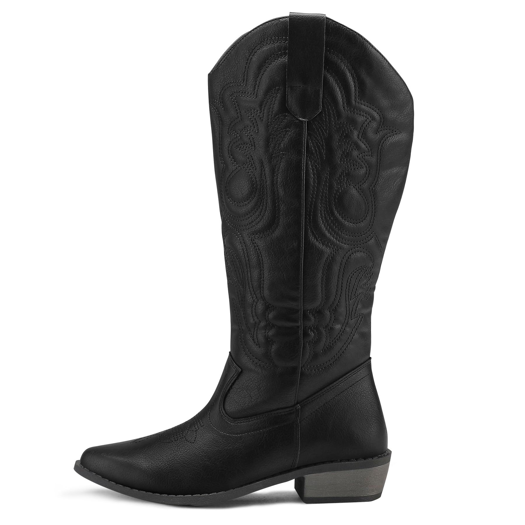- Classic Western Embroidery Style: These women’s cowboy boots showcase timeless Western embroidery on the shaft, blending tradition with elegance. It's designed with a pointed toe, a durable rubber sole, and a low, angled square heel for a classic yet modern look