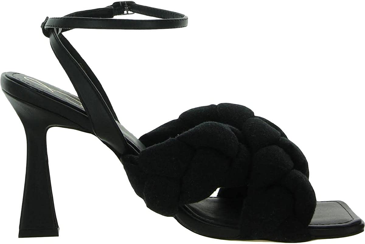 A summery and statement-making pair of heeled sandals. This cool strappy style spotlights a pair of crossover braided straps at the upper, and is crafted from supple, sunshiny leather. Wear yours with everything from jeans to midi dresses.