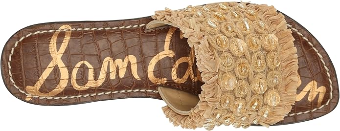 Feminine details abound in the uber glam Gladys slide with eyelet beading and raffia eyelash trim. Make your maxi dresses look even more carefree!