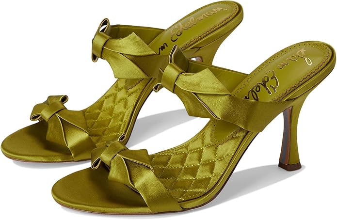 Sam Edelman Jasmine Greentini  Open Toe Bow Detail Slip On Stiletto Heel Sandals