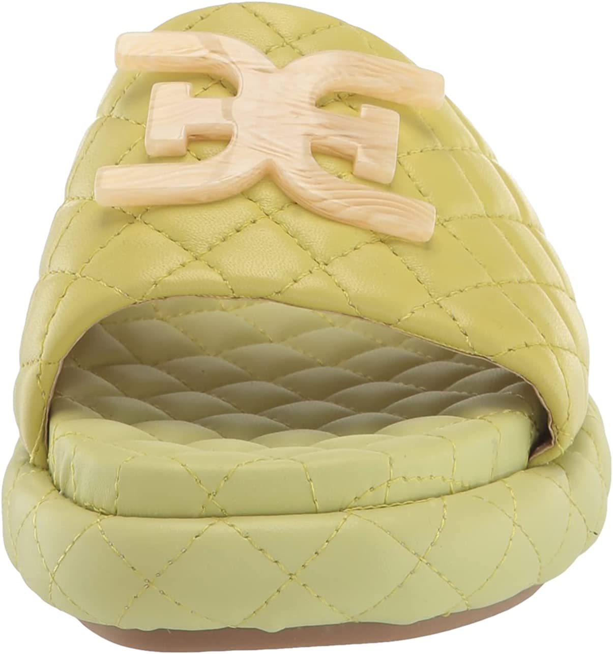 Step into quilted, cushioned, pillow-y, cloud-like comfort with Karinda. Enamel details take this cozy slide to the next level.
