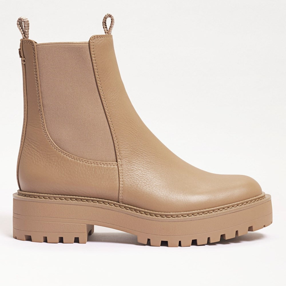 Sam Edelman Laguna Cedarwood Leather Chelsea Moto Rounded Toe Pull On Boots