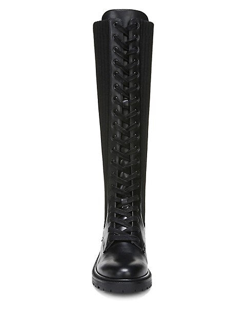Sam Edelman Lila Black Lace Up Round Toe Block Heel Classic Tall Combat Boots