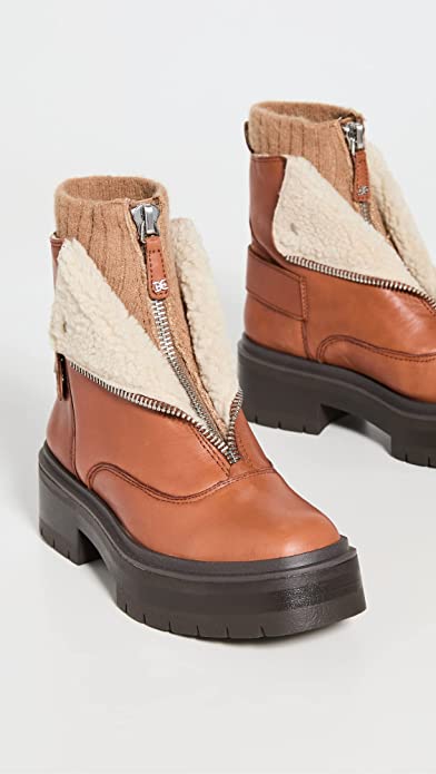 Sam Edelman Linds Brown Leather Chunky Heel Rounded Toe Zipper Ankle Boots