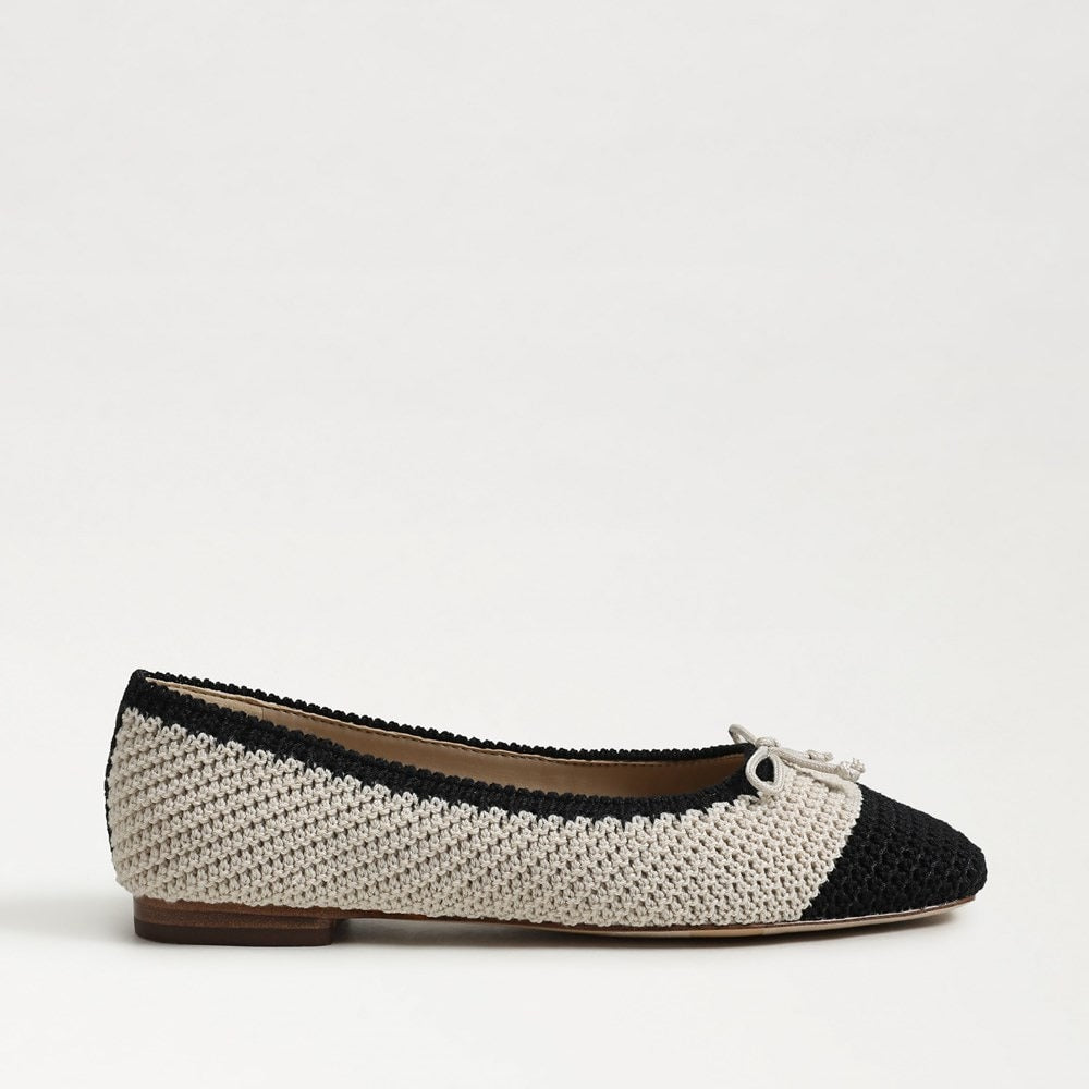 Sam Edelman Madison Modern Ivory/Black Squared Toe Slip On Casual Ballet Flats