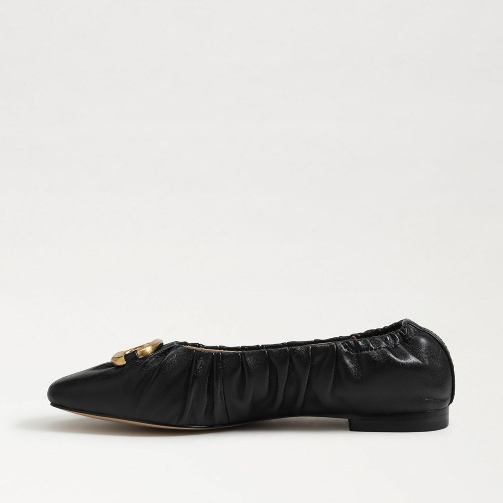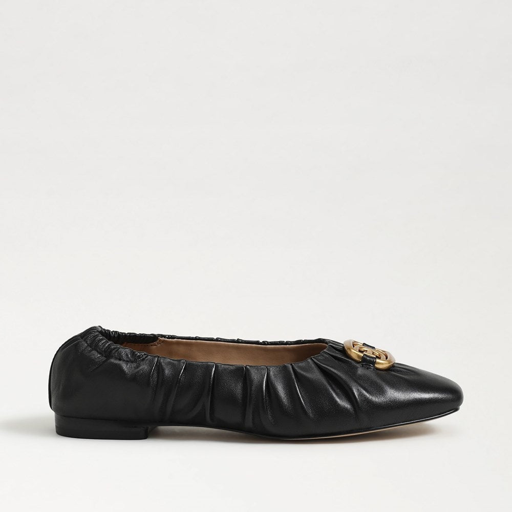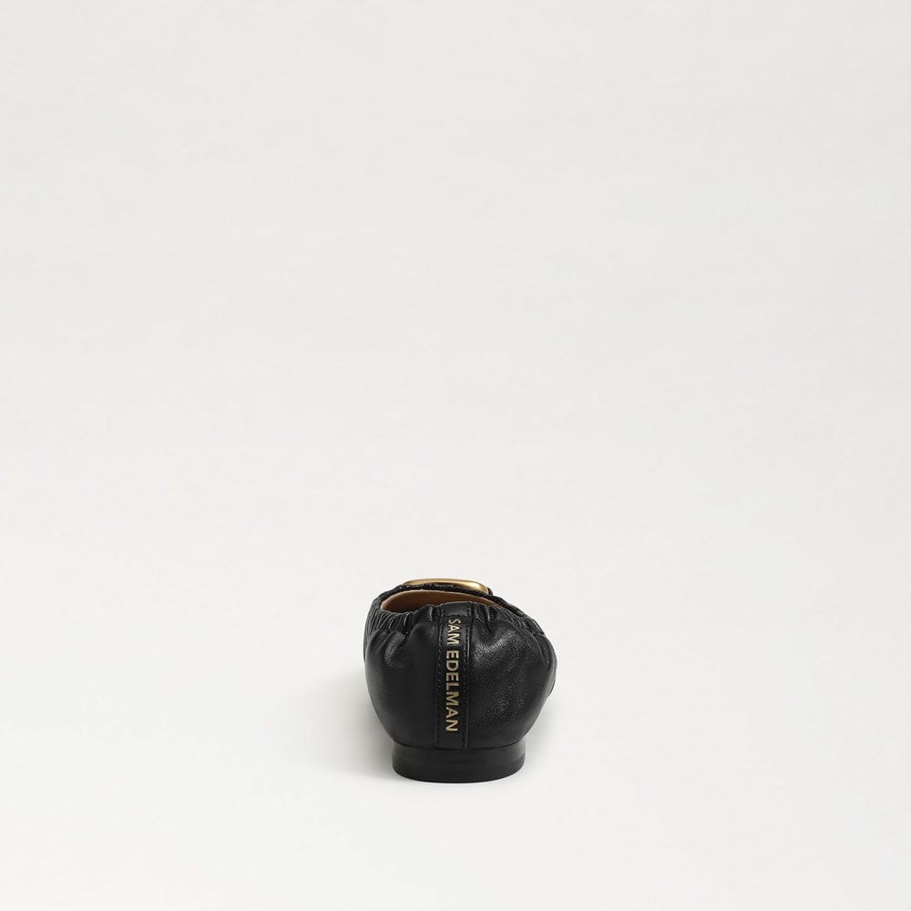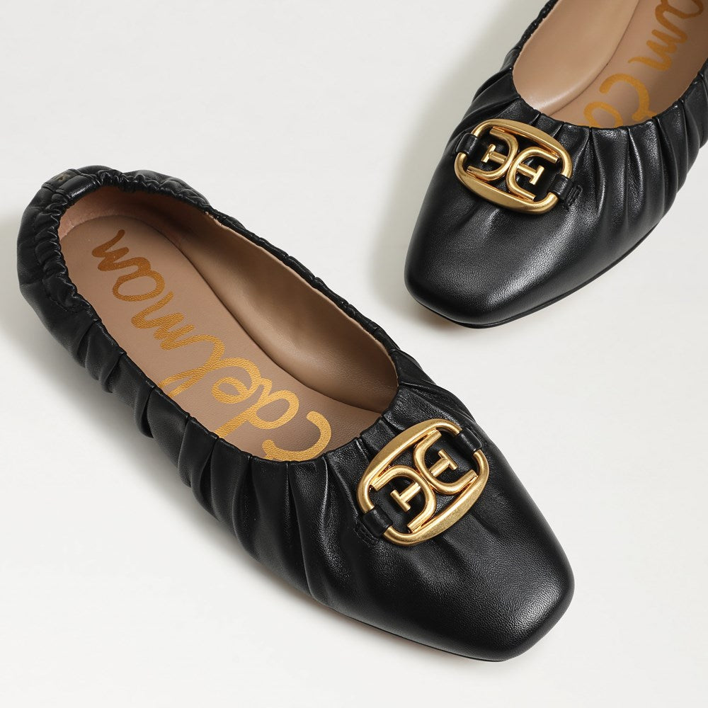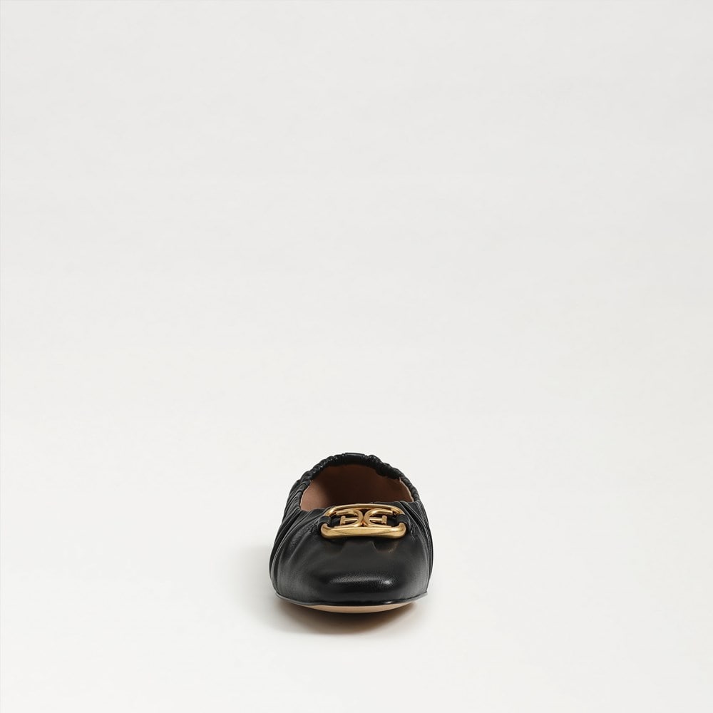 Sam Edelman Marlowe Black Leather Logo Detailed Slip On Square Toe Ballet Flats