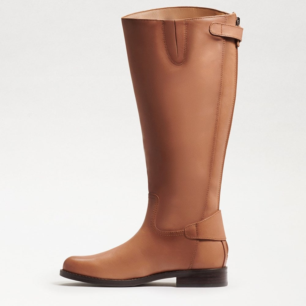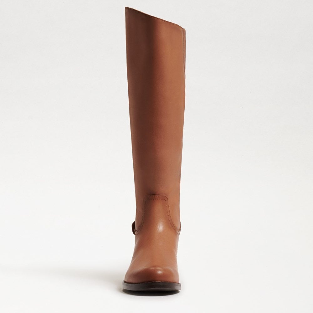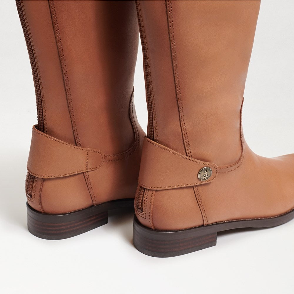 Look gorgeous in these stylish and sleek Mikala boots by Sam Edelman, perfect for everyday wear or on special occasions. Leather upper. Synthetic lining and insole. Zippered side closure and snap-button closure on the top. Round toes. Branded metallic hardware. Synthetic outsole. Imported.
