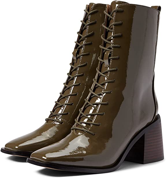 Sam Edelman Westie Alpine Green Stacked Heel Lace Up Squared Toe Fashion Boots