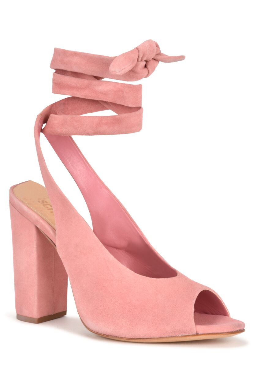 Schutz Archie Poppy Rose Pink Ankle Wrap Peep Toe High Heel Pumps Sandals Heels