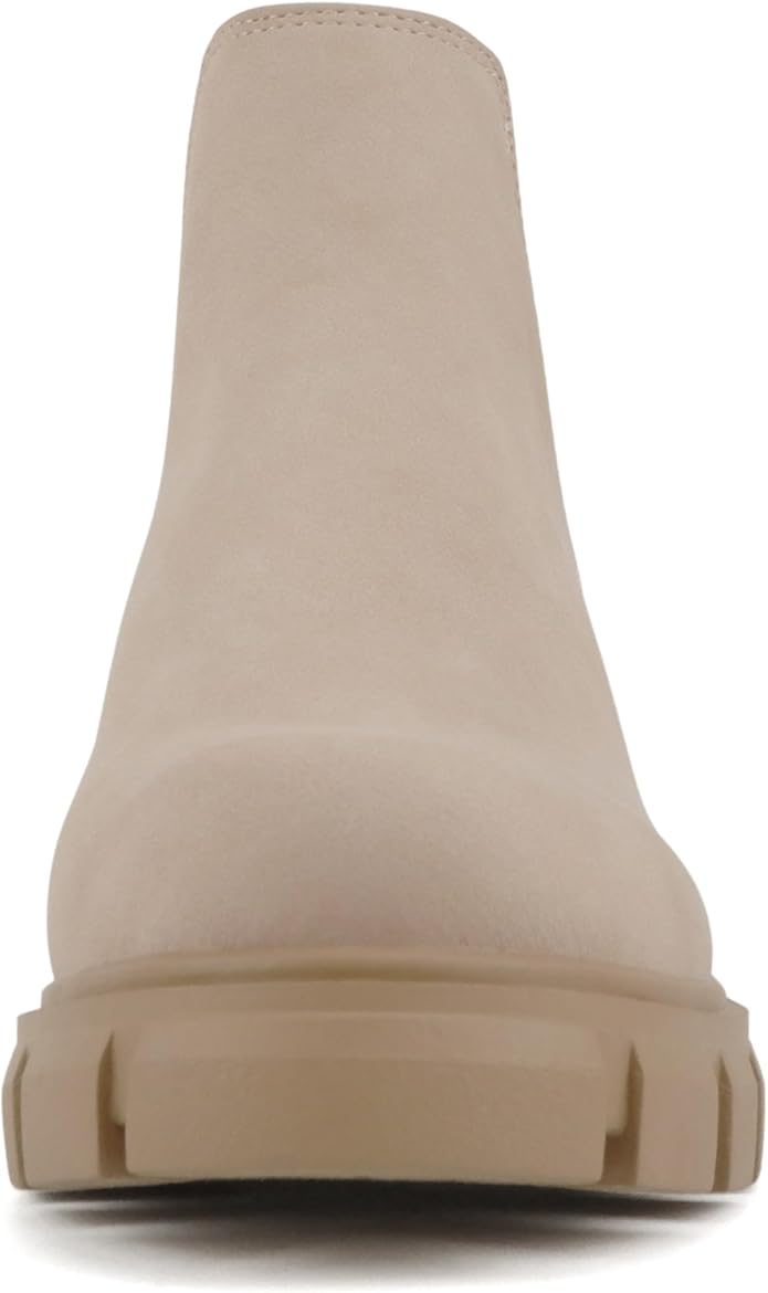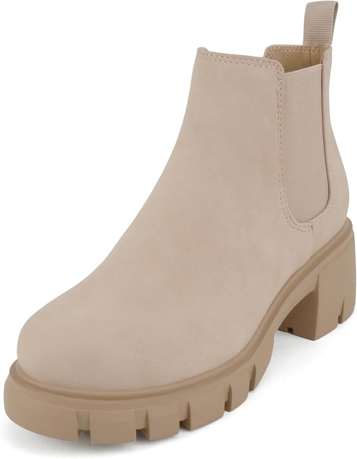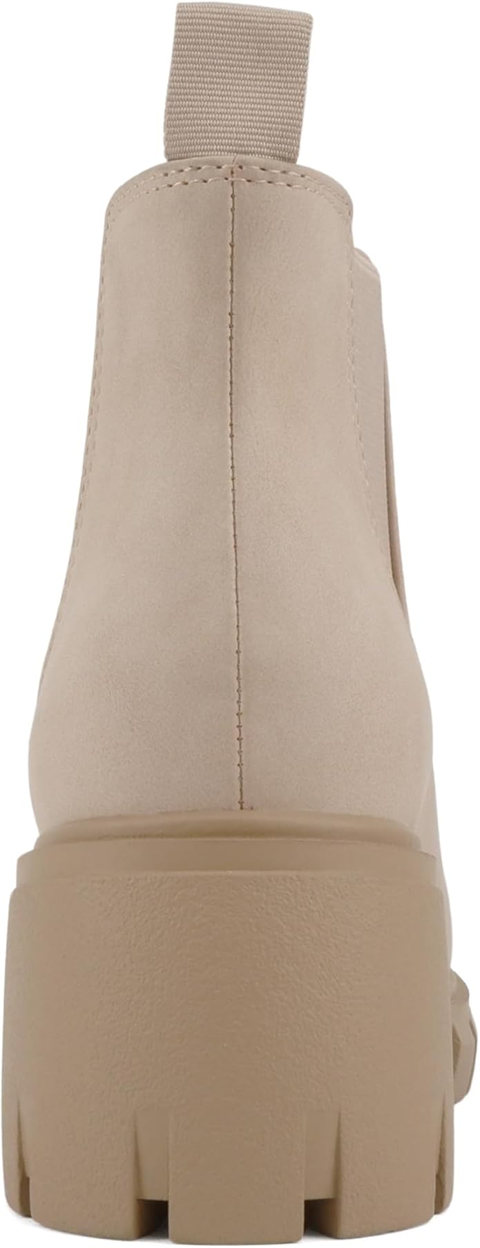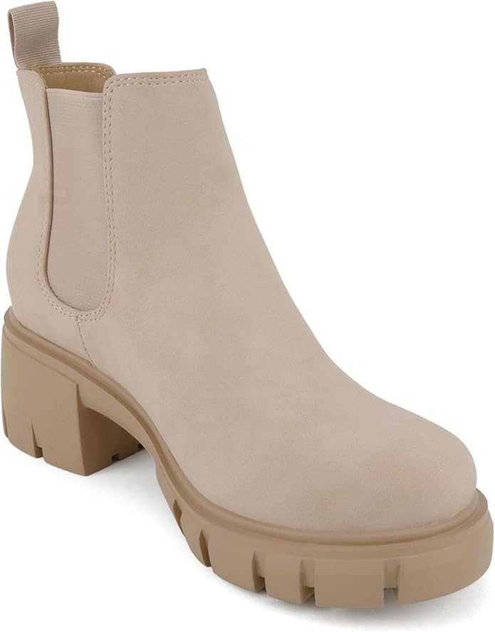 Soda Pioneer Deep Camel Lug Sole Mid Heel Chelsea Fashion Ankle Elastic Booties