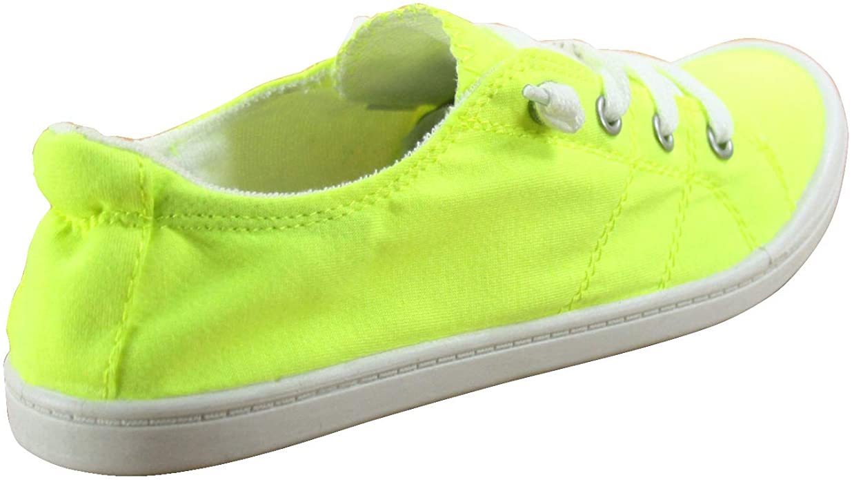 - Soda Flat Women Shoes Linen Canvas Slip On Sneakers Lace Up Style Loafers ZIG-S Neon Hot Yellow 9