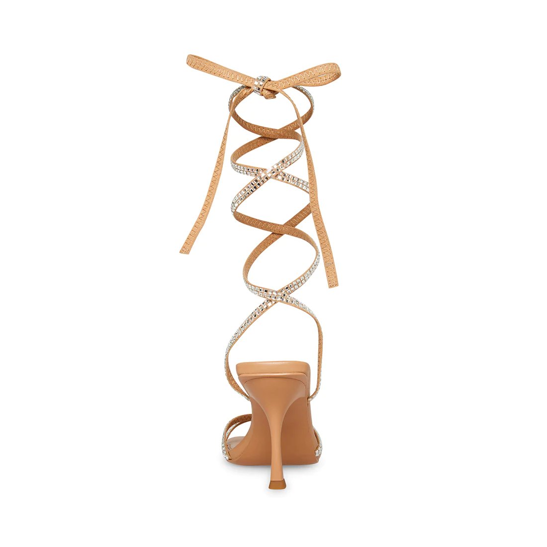 Steve Madden Lulie Rhinestone Strappy Open Toe Tie Up Stiletto Heeled Sandals