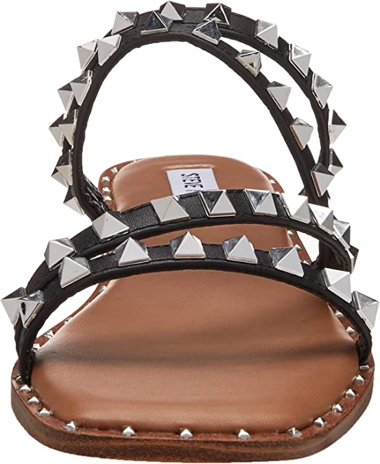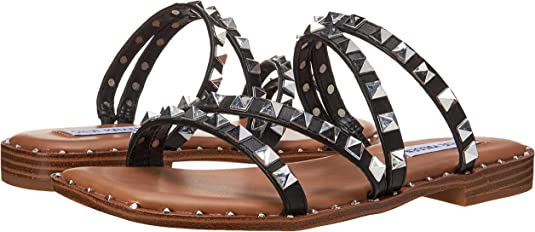 Steve Madden Skyler Black Fashion Flat Embellished Slip On Squared Toe Sandals