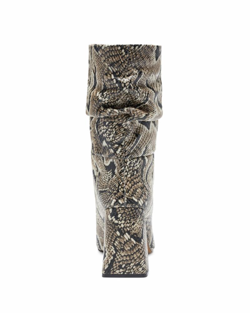 Set on an architectural flared heel, this 90s-vibe bootie is crafted of soft leather or suede that lets you wear the boot in a slouchy silhouette or as a mid-calf style. With its clean-lined, zipper-free shaft, the pair slips on and off with ease. Were wearing ours with a pleated midi skirt and chunky sweater.
