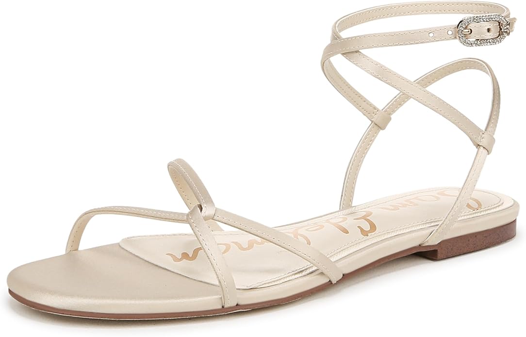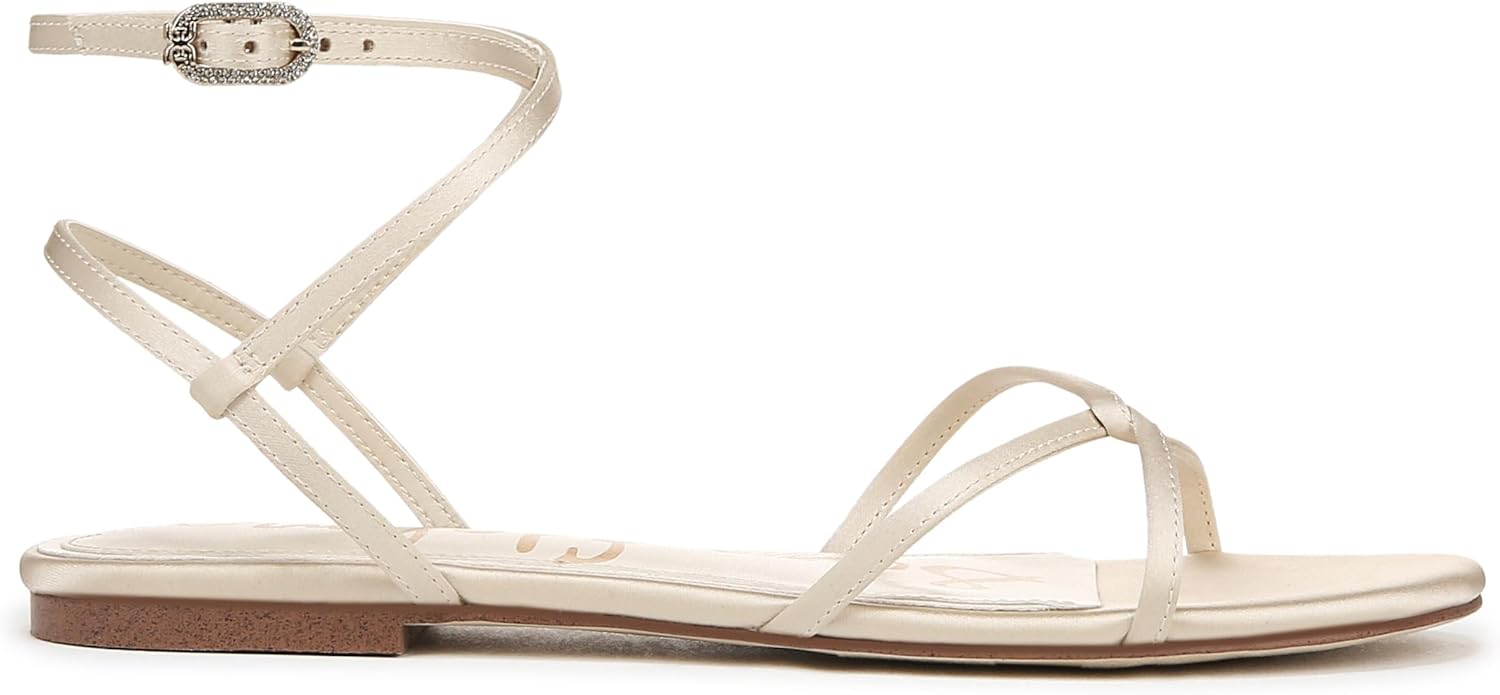 Sam Edelman Ellina Modern Ivory Satin Open Toe Strappy Ankle Strap Flat Sandals