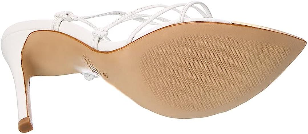 Get ready for your next night out in this sassy stiletto sandal designed with slim laces that wrap around the ankle and a metallic accent reinforcing the toe.