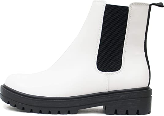 Soda Pilot White Pull On Round Toe Chunky Platform Block Heel Wide Ankle Boots