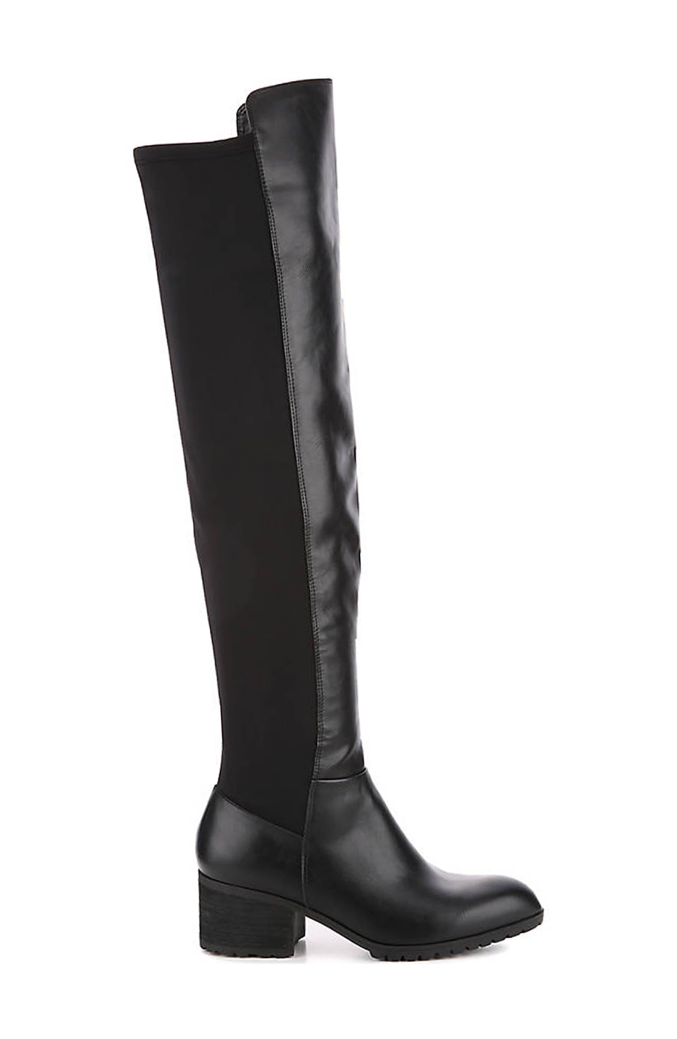 A block heel adds a hint of utilitarian style to the streamlined silhouette of this outfit-making over-the-knee boot.