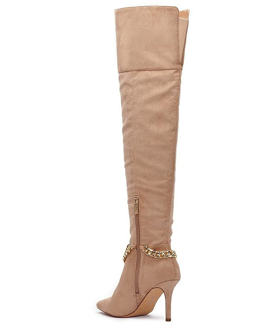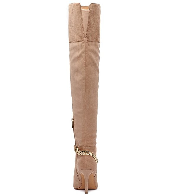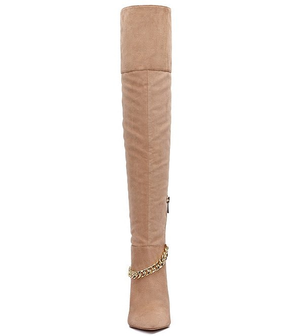 Chain Detail Over Knee Stiletto Heel Boots Taupe Suede