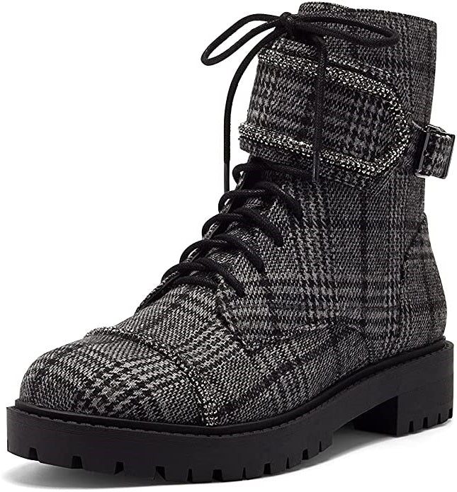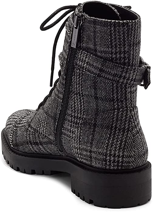 Jessica Simpson Karia Round toe Lace-up Wrap Strap Combat Boots Black & White