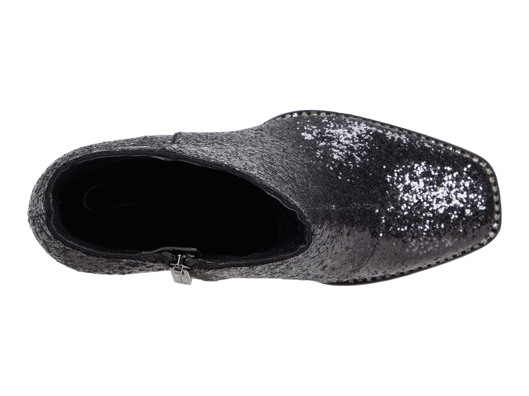 Jessica Simpson Silvya Black Glitter Block Heel Disco Square Toe Ankle Booties