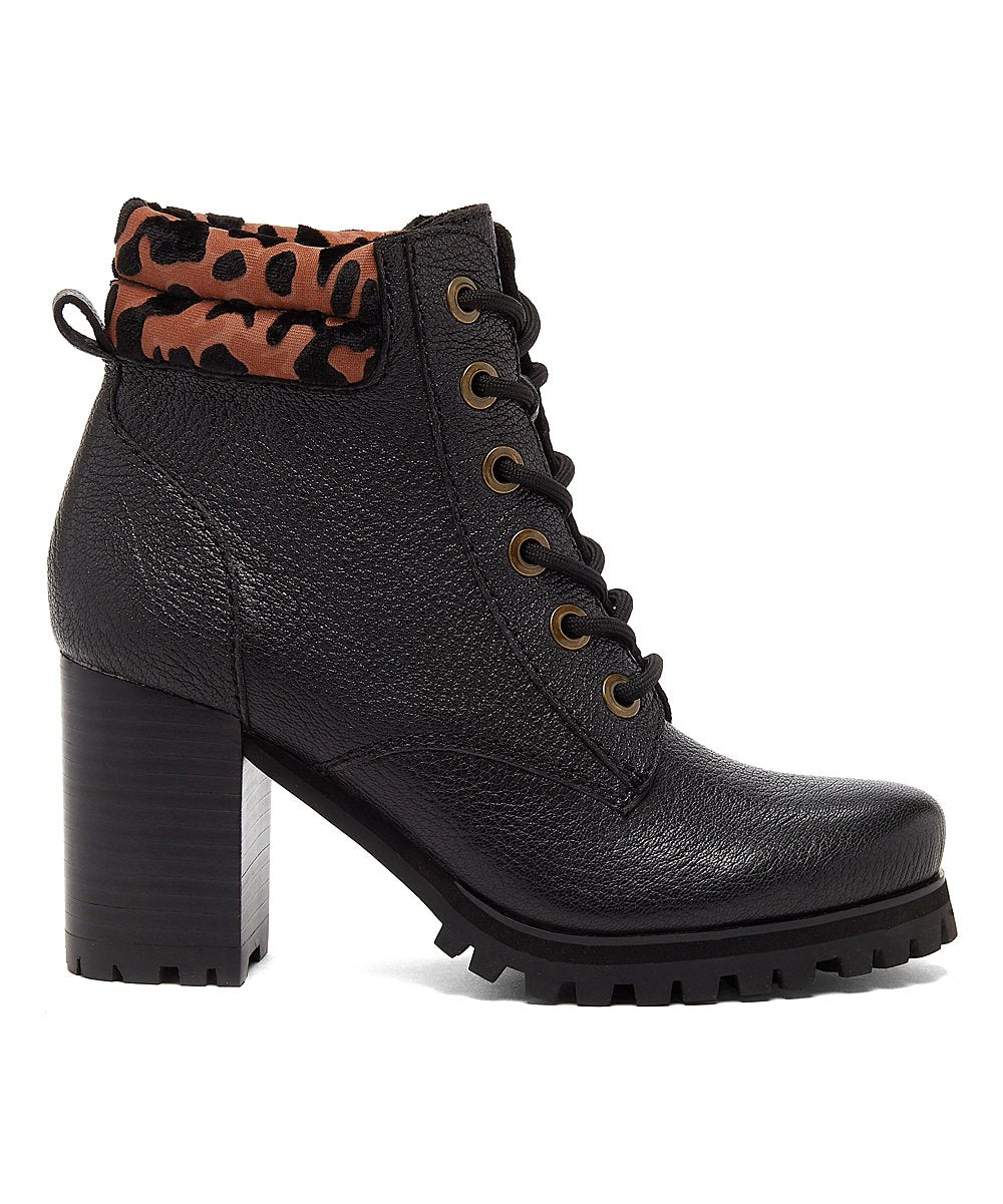 Bring staple style to your wardrobe with this leather bootie featuring a leopard-contrast upper.