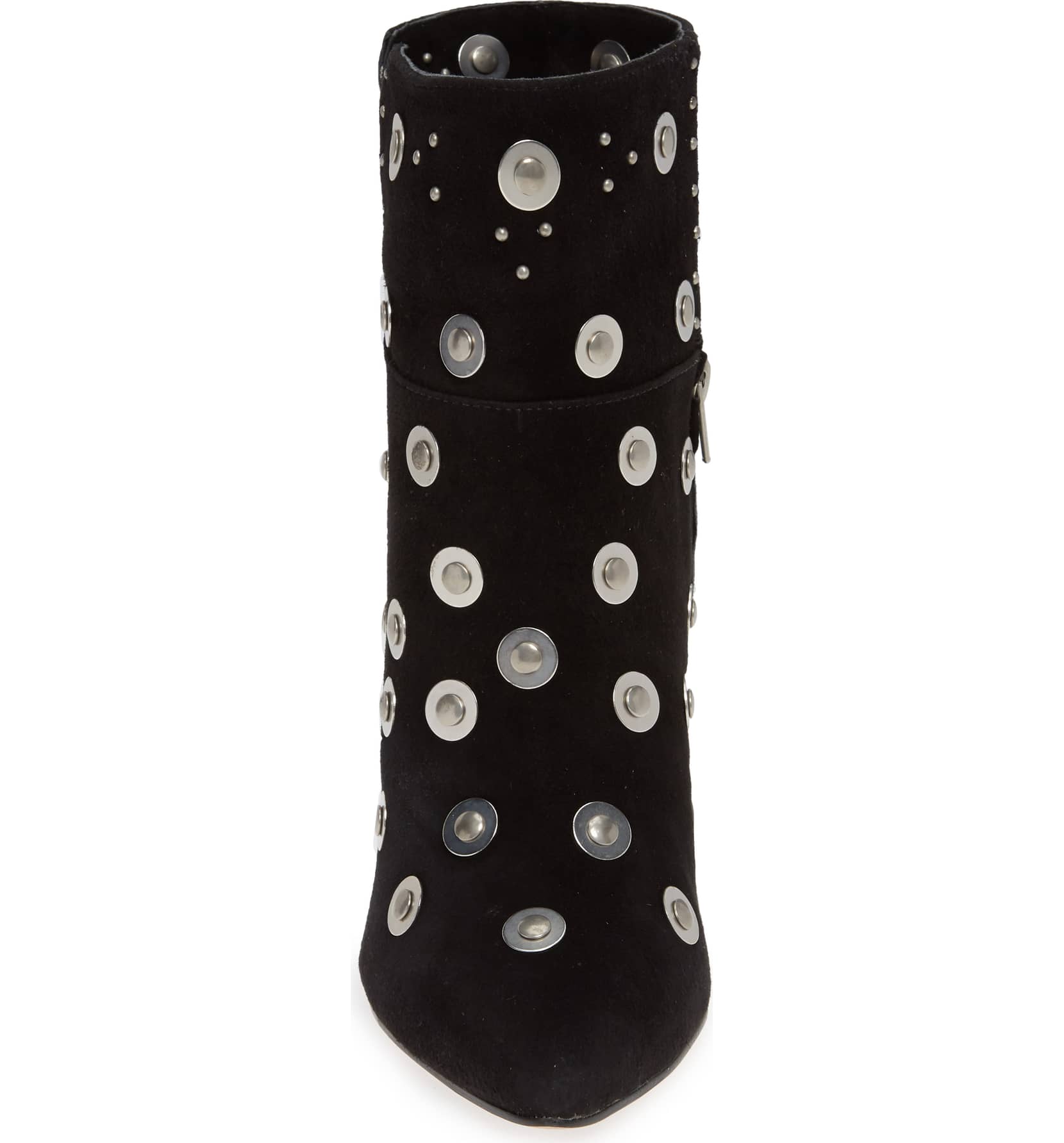 Casablanca Stud Bootie Black Suede Pointed Toe Metal Detail Boot MSRP Casablanca Stud Bootie Smooth studs and gleaming washers punctuate a statement-making bootie lifted by a stacked, cone-shaped heel.