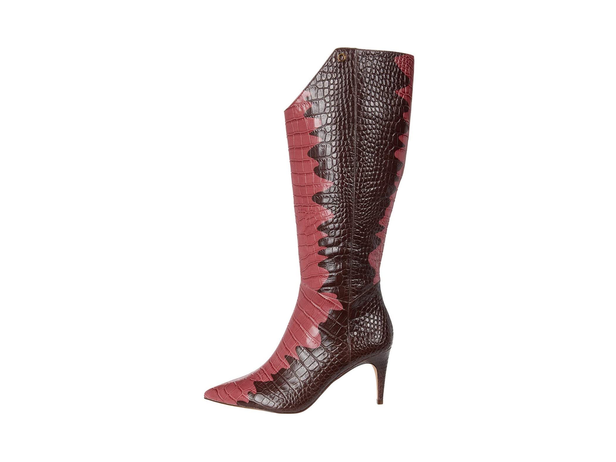 Louise et Cie Kamil Leather Pointed Toe Tall Shaft Boots Flame Red Snake Boots