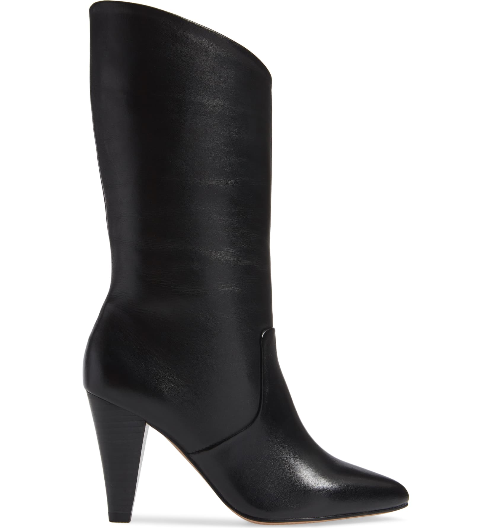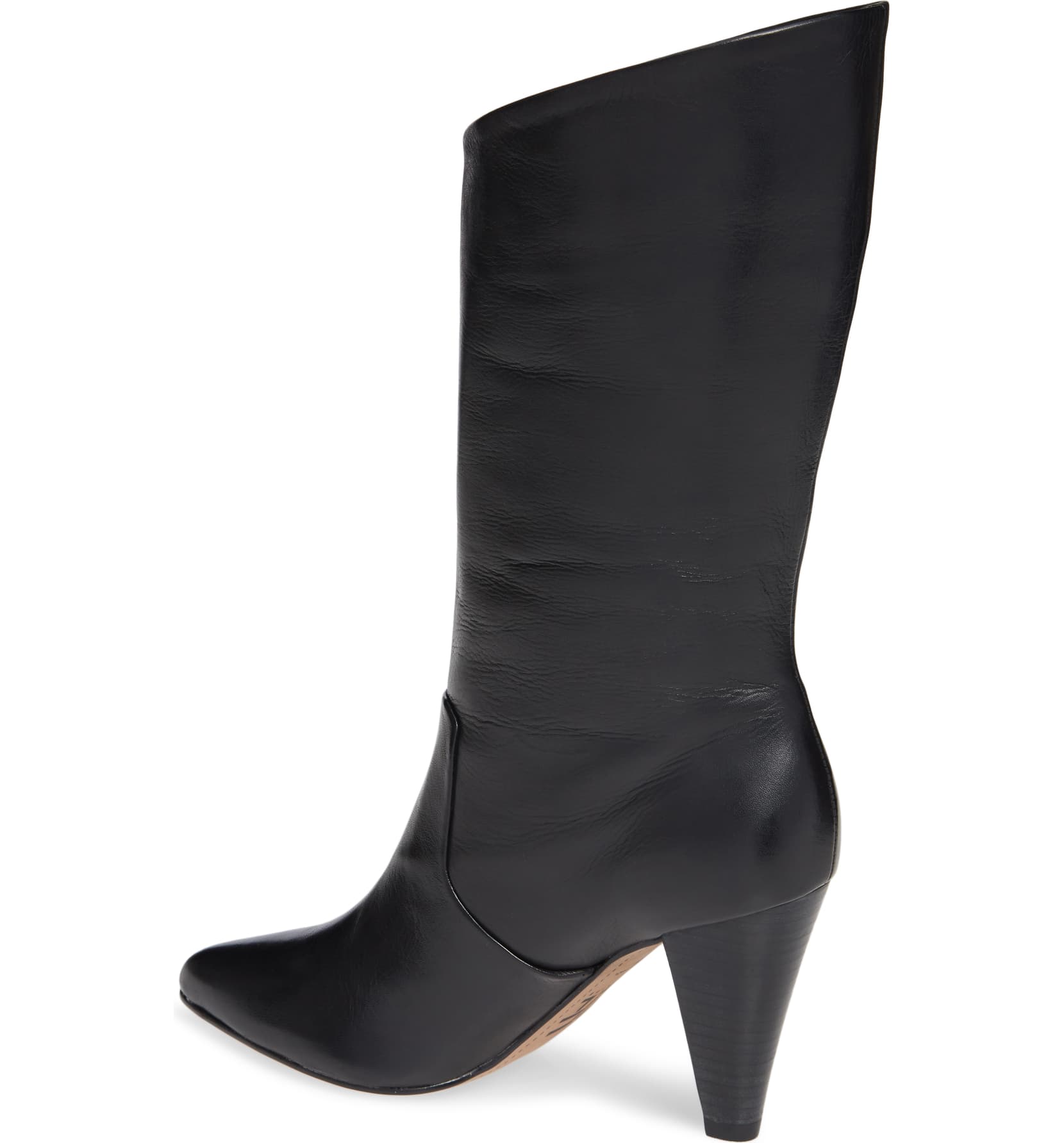 Lust For Life Cayenne Angled Top Line Cone Heel Mid Calf Tapered Heel Boots