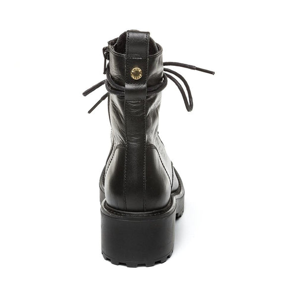 Meet Tornado, the combat boot for power dressers. A chunky heel elevates this classically tough standby style, lending feminine height and no-nonsense attitude.