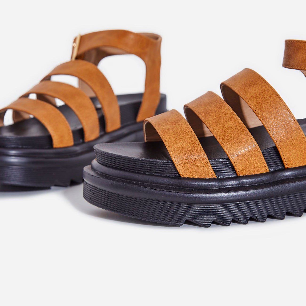 Lemonade Clueless Tan Strappy Ankle Buckle Cushioned Black Open Toe Platform Sandals
