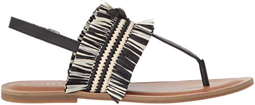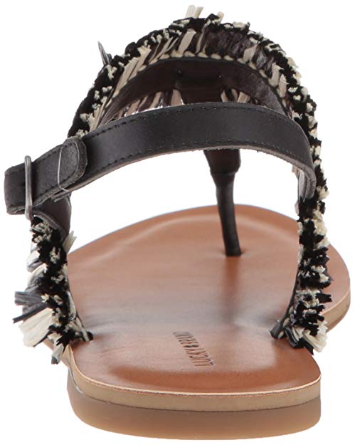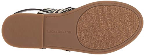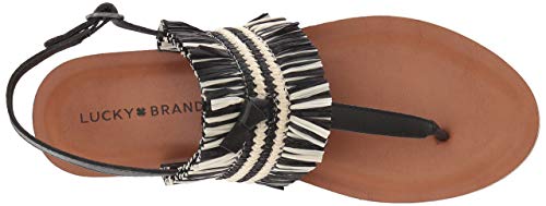 Lucky Brand Akerlei Flat Sandal Black Natural Ankle Strap Flat Thong Leather