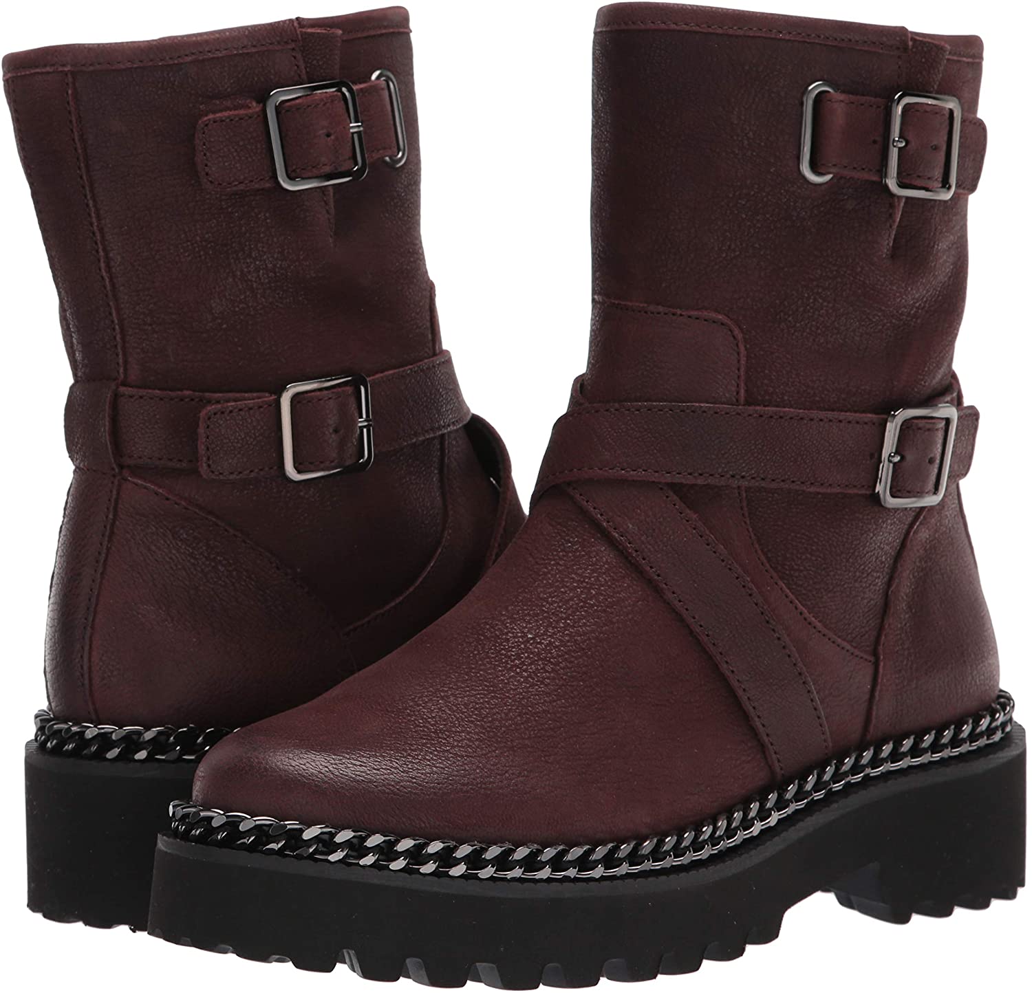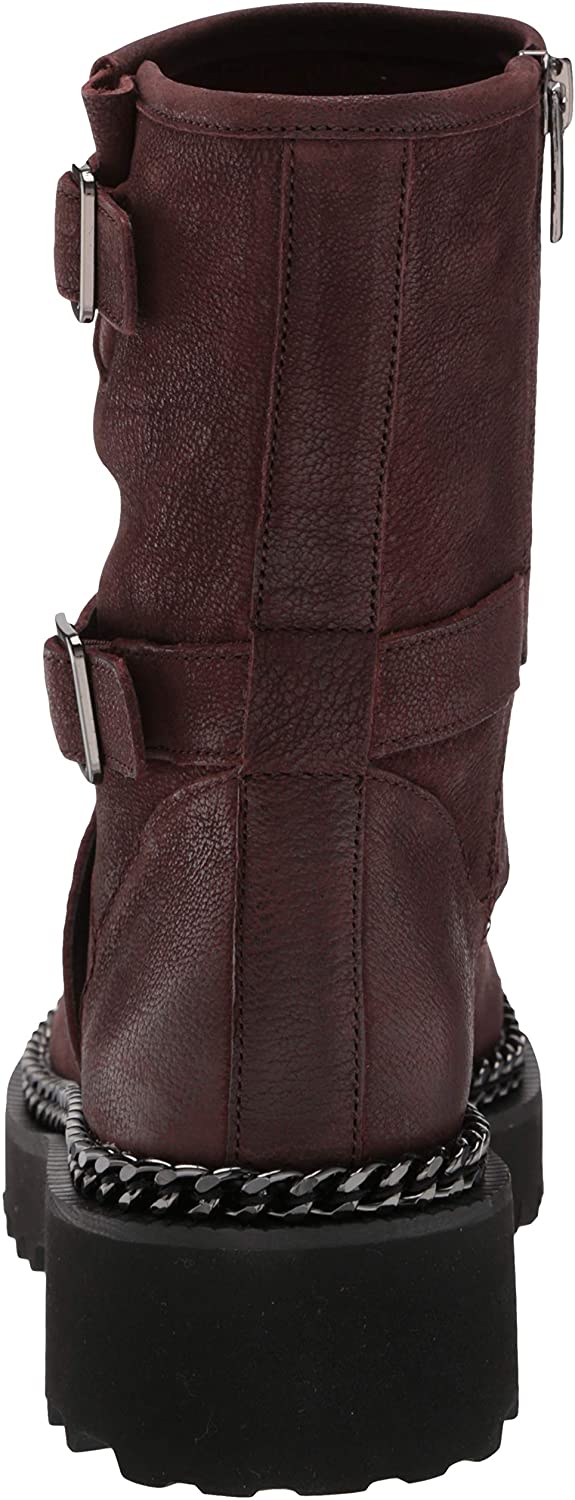 Vince Camuto Messtia Burgundy Motorcycle Buckle Moto Chain Chunky Platform Boots